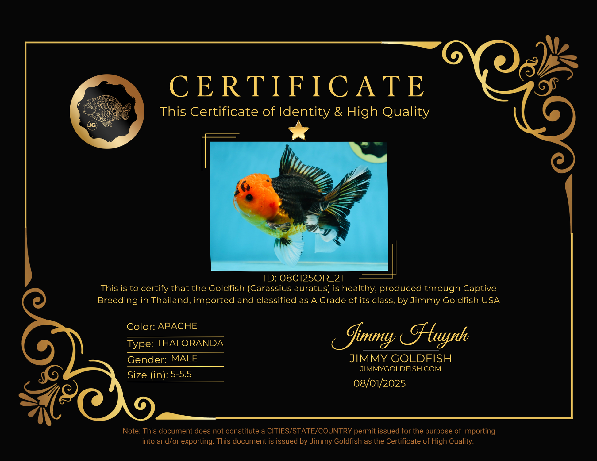 A Grade Apache Button Eyes Oranda Male 5-5.5 inches #080125OR_21