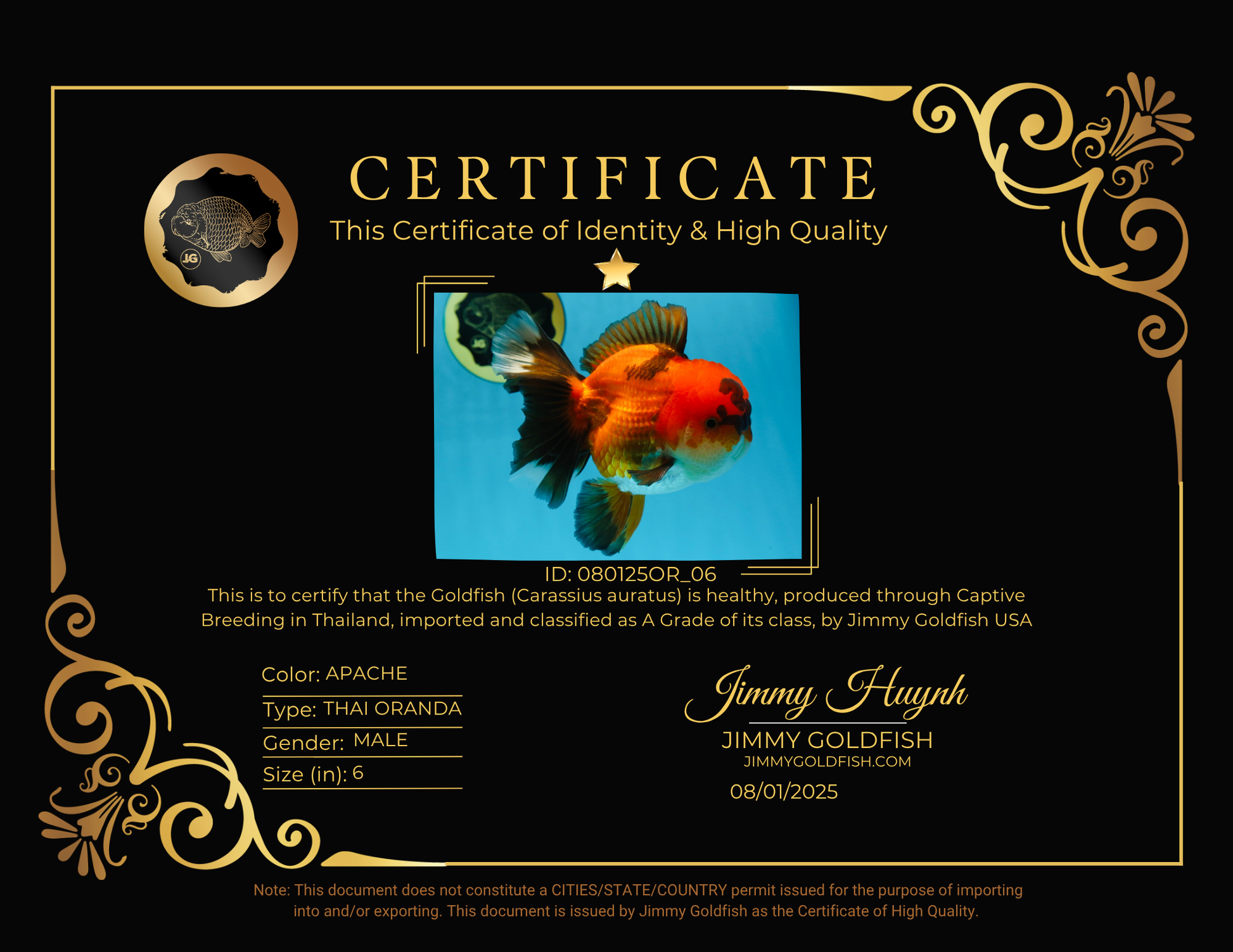 A Grade Apache Oranda Male 6 inches #080125OR_06