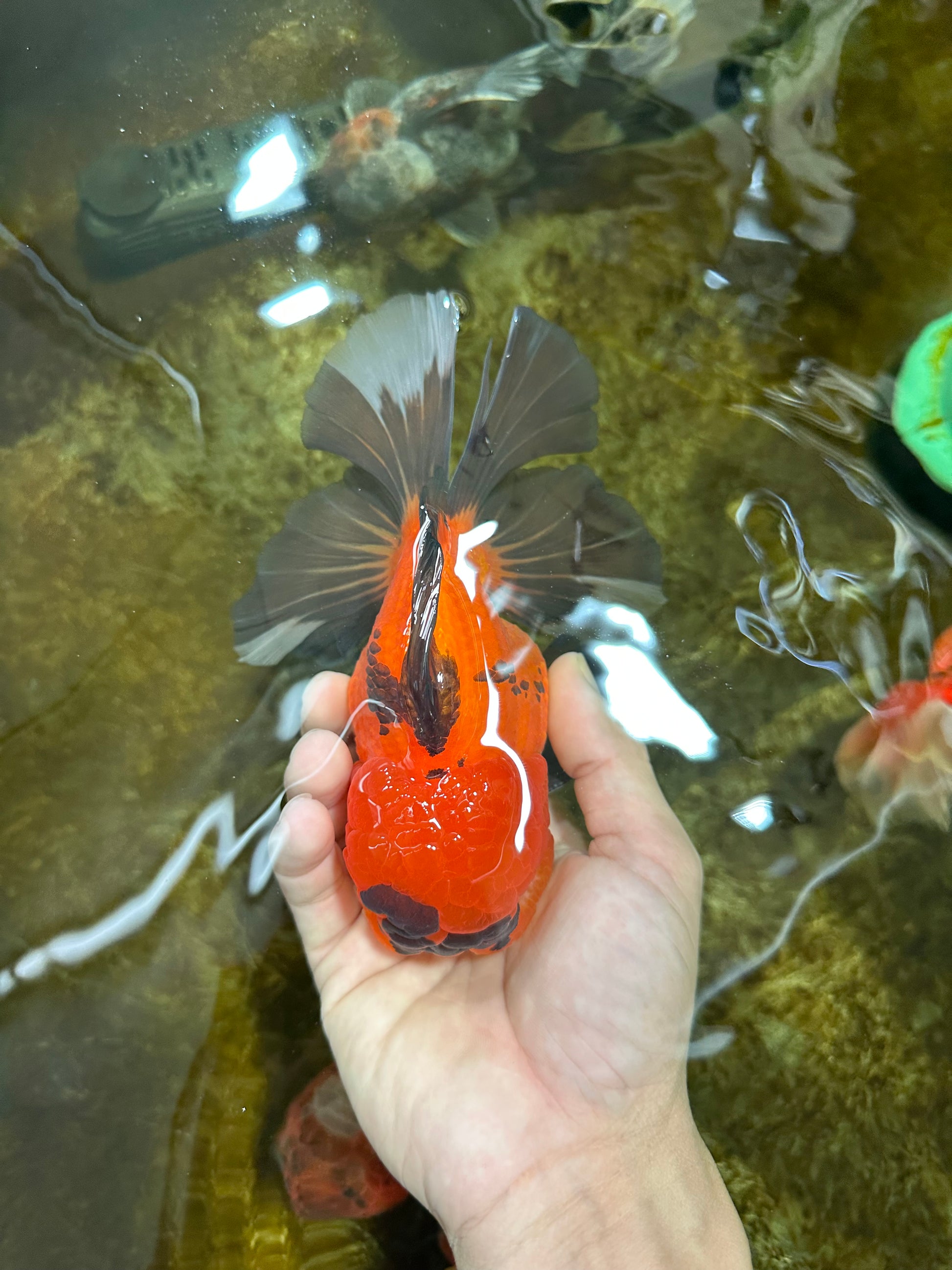 Large, confident, and colorful—this Apache Oranda commands attention in your tank! Premium elegance at its best. #JimmyStyle