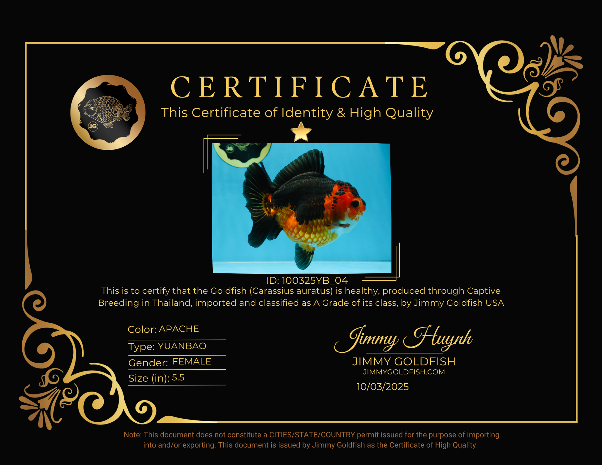 This lovely Apache Yuanbao shows off bold patterns with a compact 5.5-inch body. Bright and spirited, she’s a show-ready gem perfect for any premium tank. #JimmyStyle