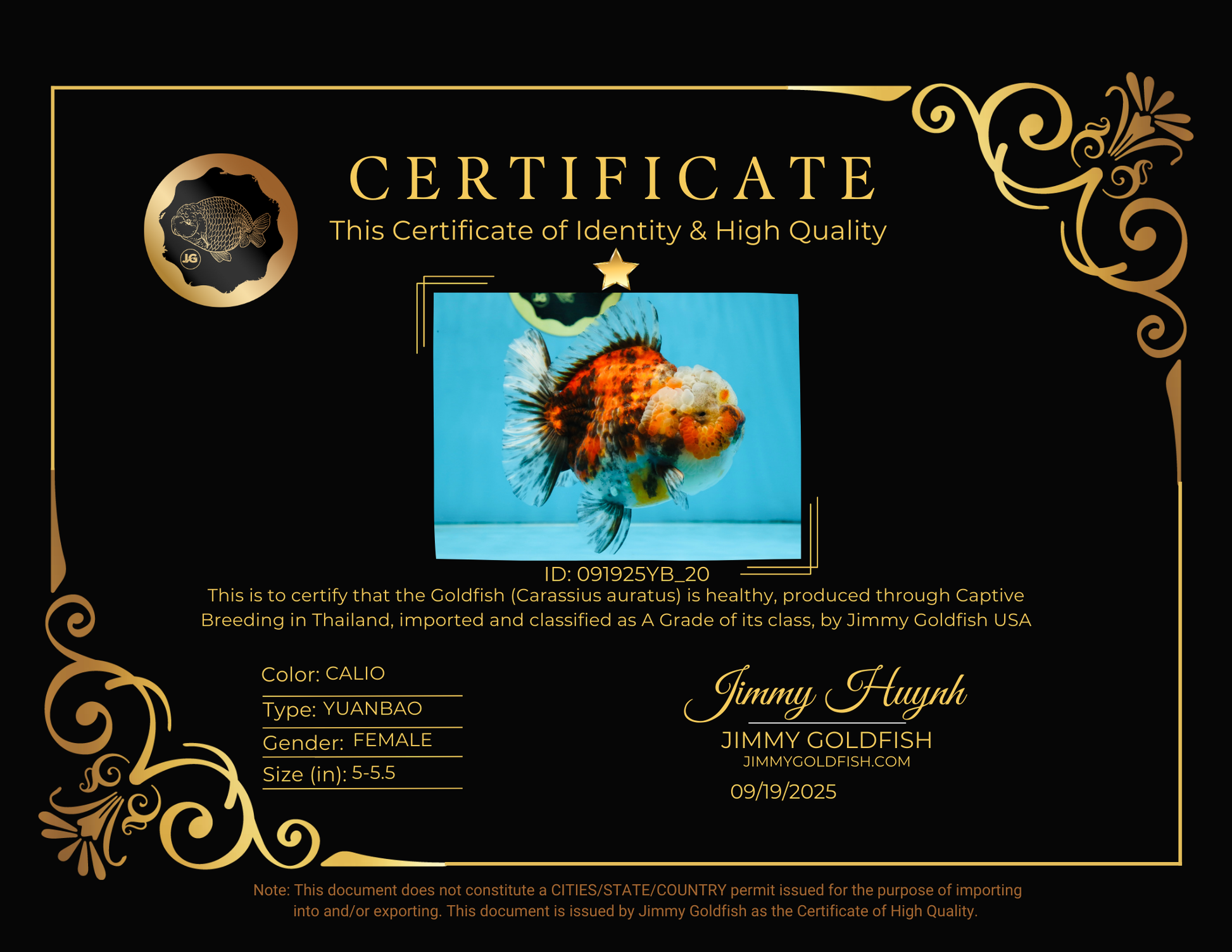 A Grade CHUBBY Calico Yuanbao Female 5-5.5 inches #091925YB_20