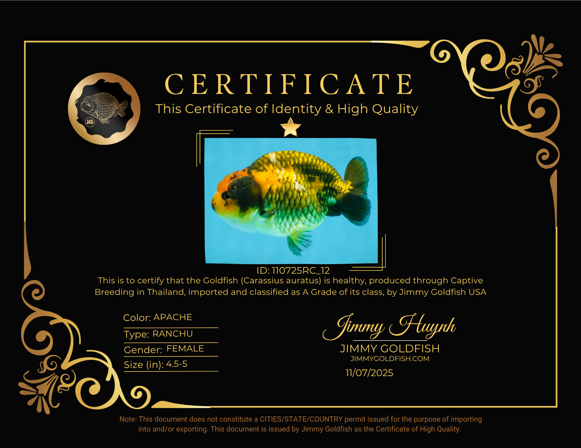 A fiery pattern and playful swim make this Apache Ranchu a standout. He’s full of character, bold color, and total #JimmyStyle attitude.