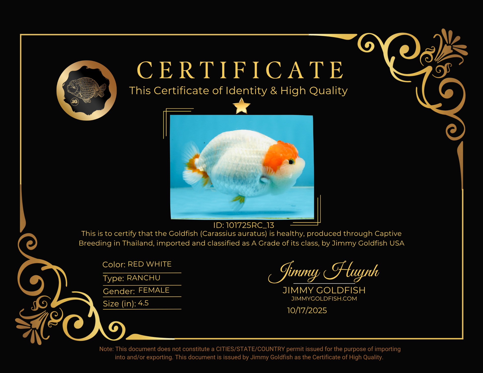 A Grade Chinese Red Head Ranchu Female 4.5 inches #101725RC_13