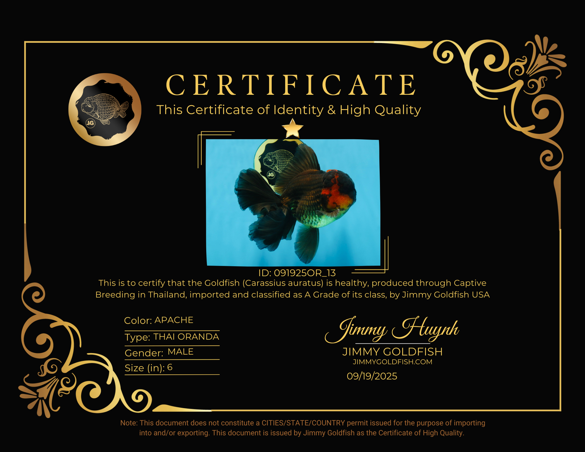 A Grade Lava Head Apache Oranda Male 6 inches #091925OR_13