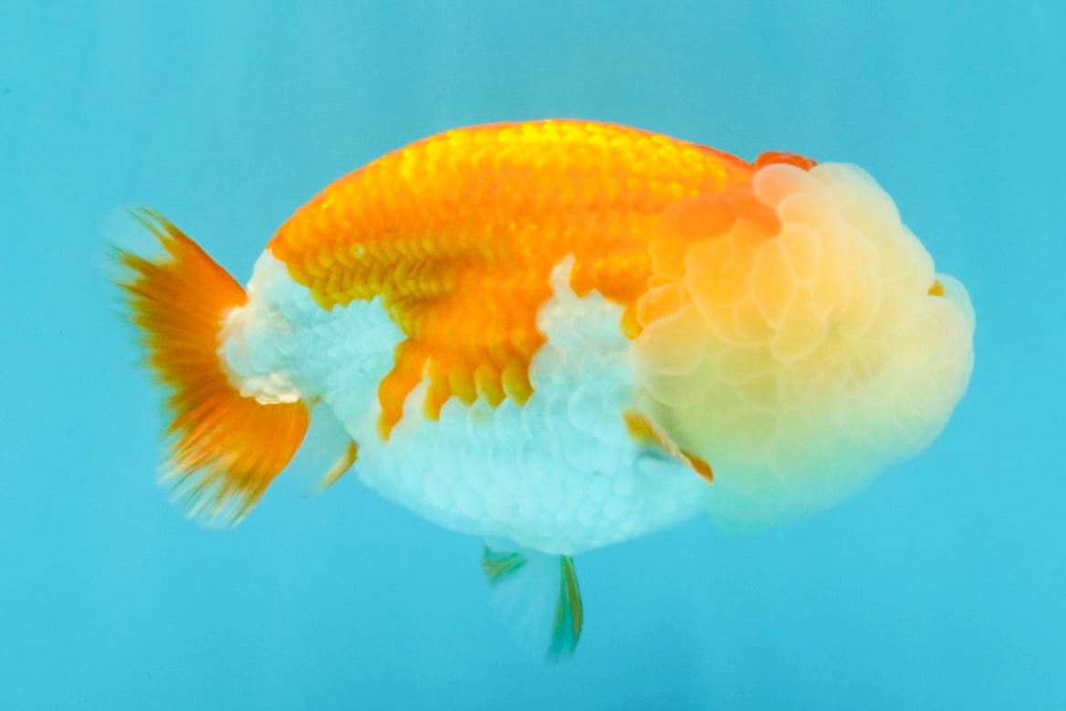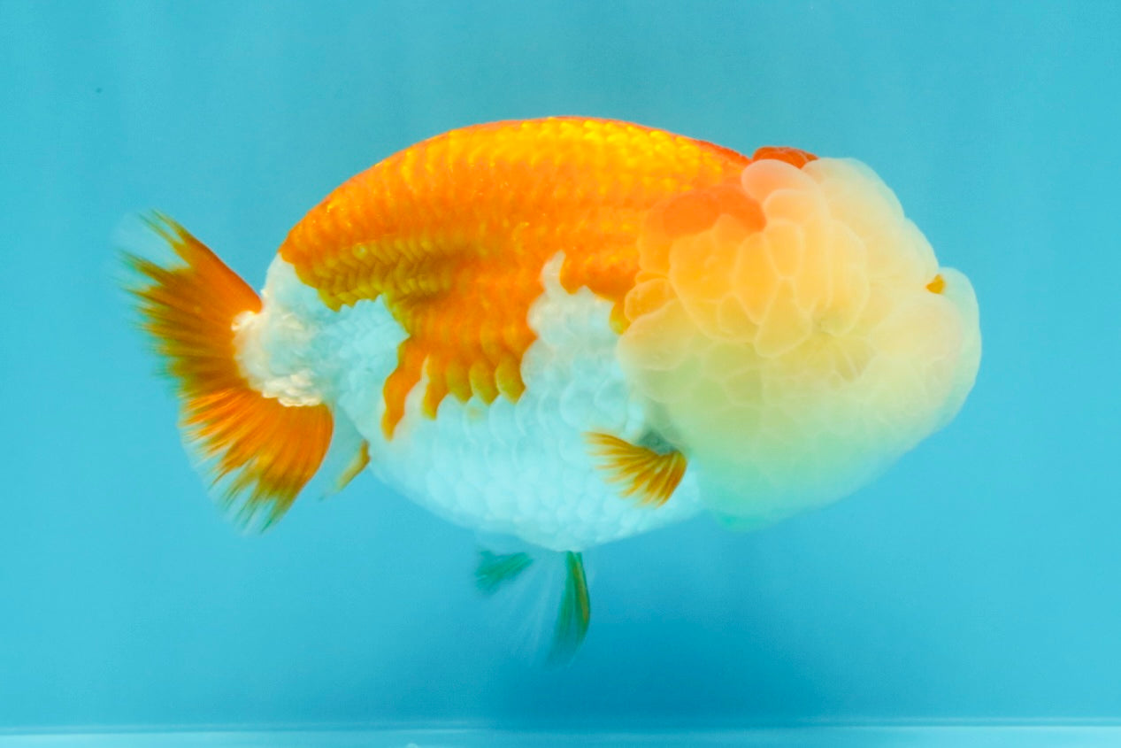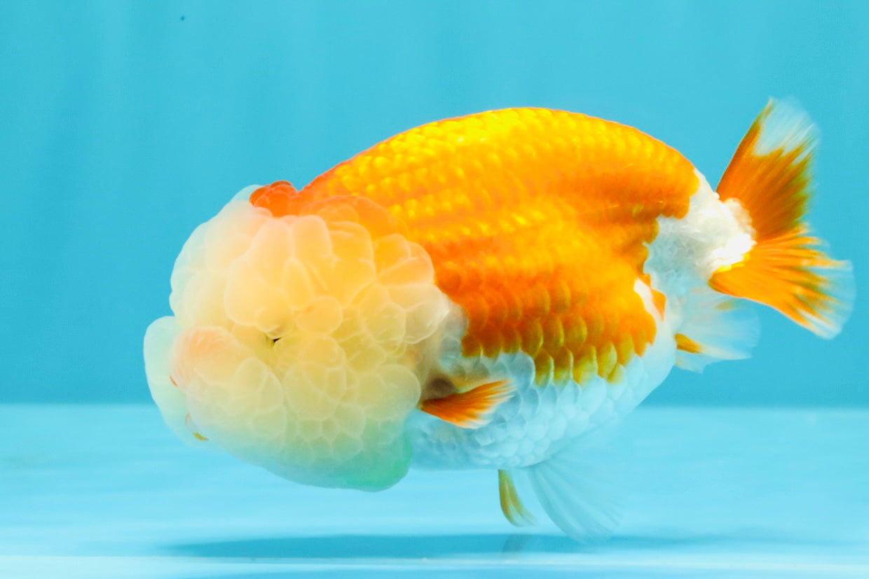 Classic red-white pattern with rounded LionQueen body. Clean lines and balanced swim make her easy to appreciate. A cheerful addition to any fancy tank.