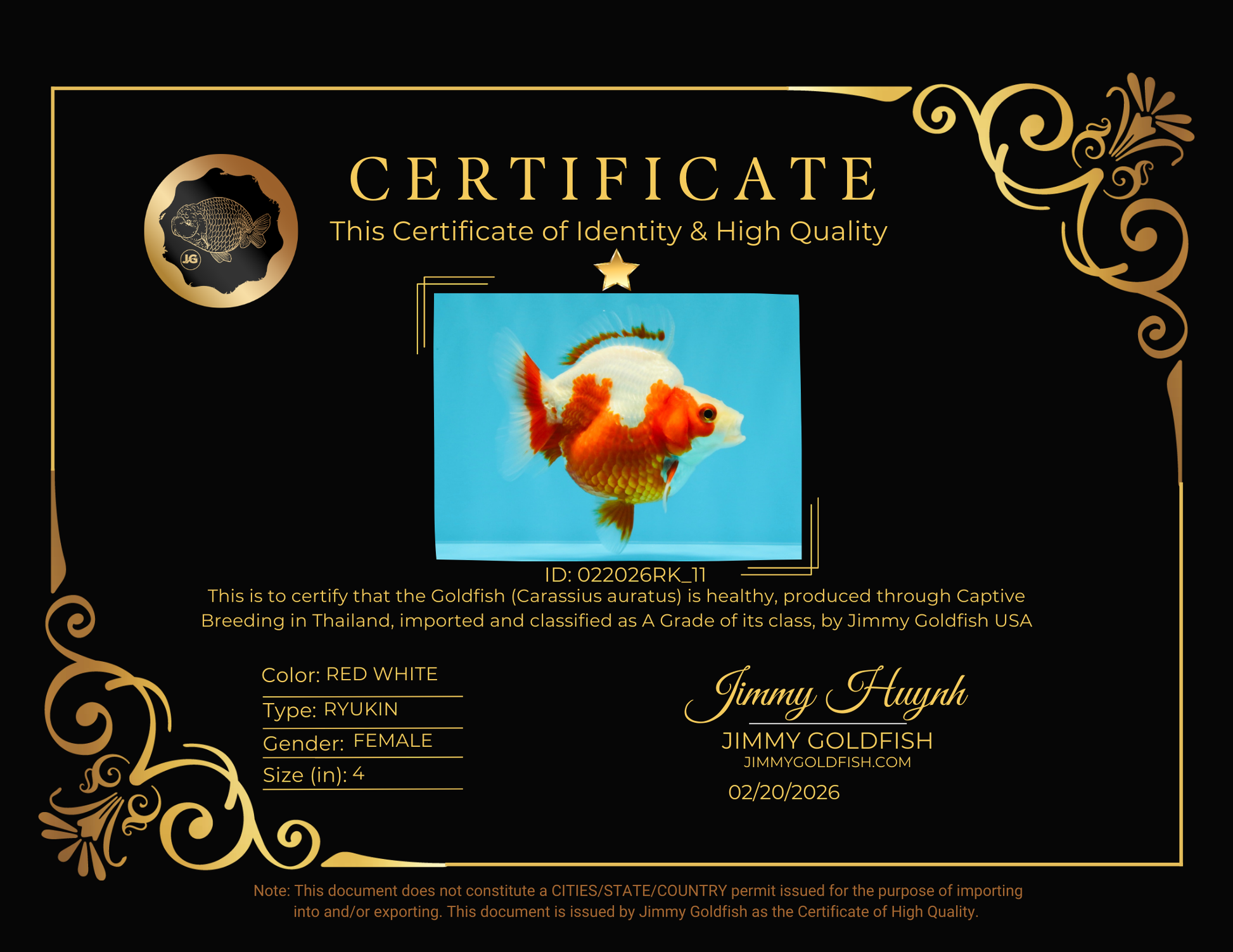 Health: Every fish has completed our strict quarantine procedure. Healthy and active condition. Disease-free guarantee.