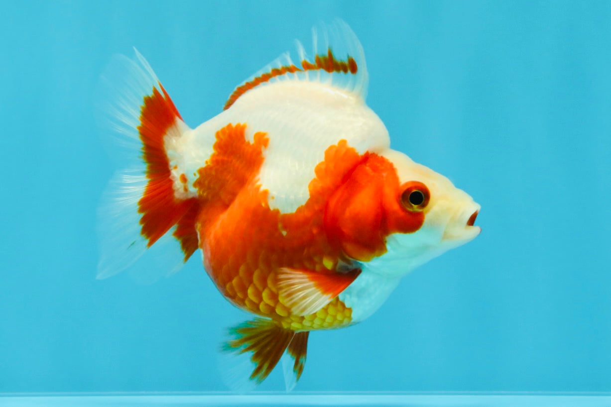 High shoulder hump and crisp red-white patterning. Compact yet strong body structure. A classic Ryukin silhouette in a manageable size.
