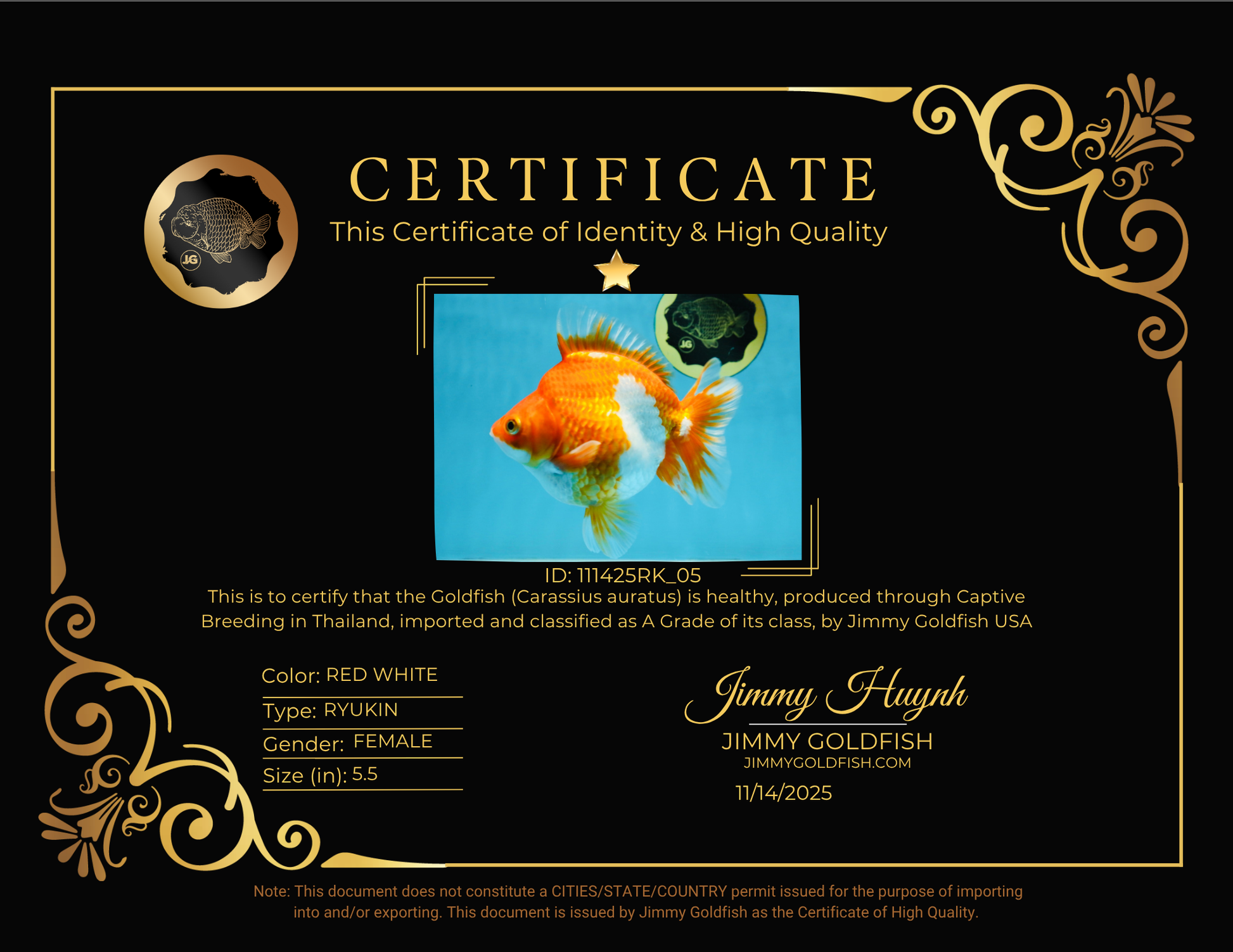 A Grade Red White Ryukin Female 5.5 inches #111425RK_05