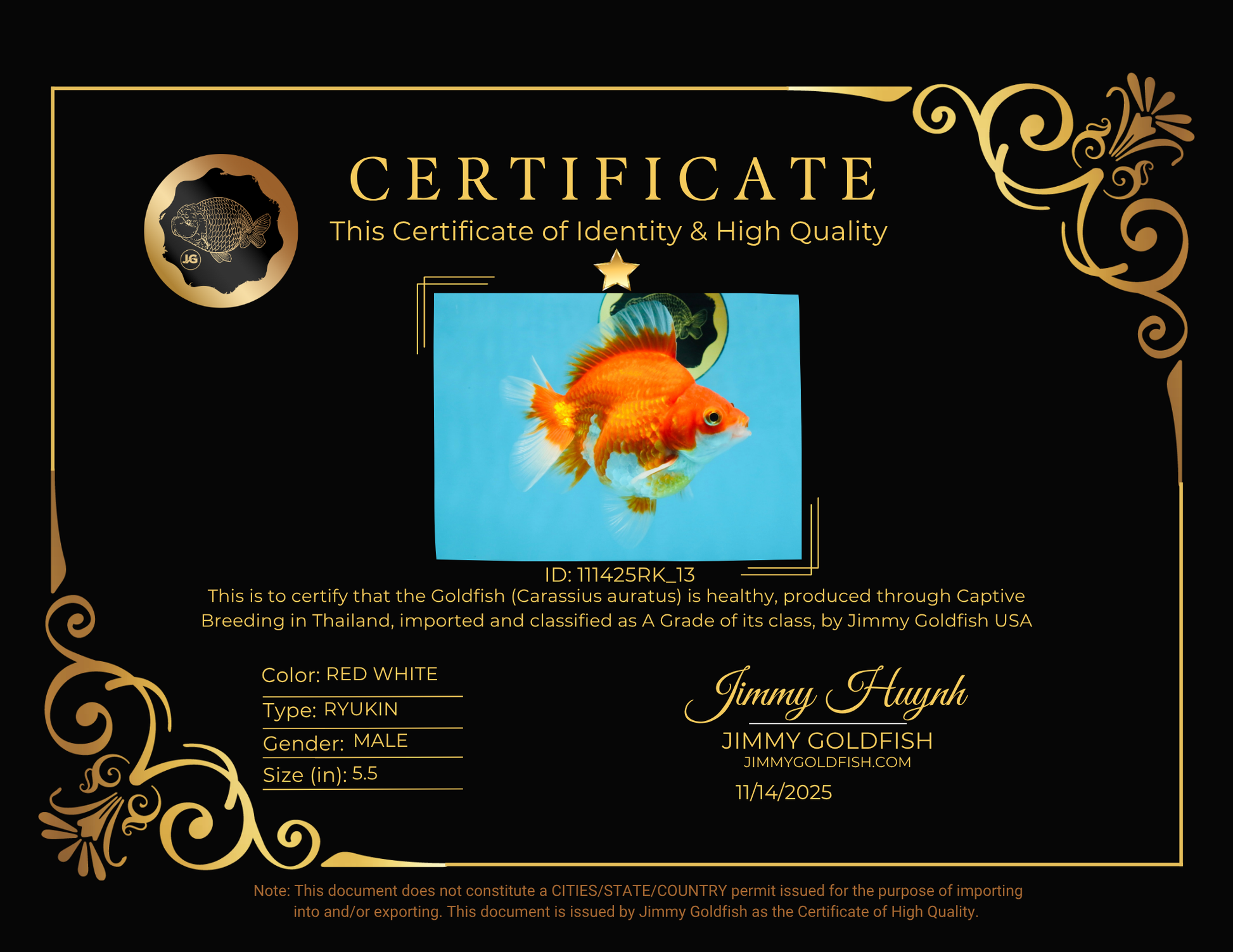 A Grade Red White Ryukin Male 5.5 inches #111425RK_13