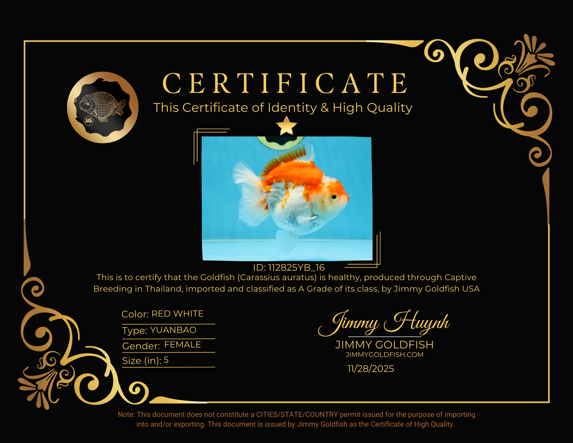 BIG WEN A Grade Red White Yuanbao Female 5 inches #112825YB_16