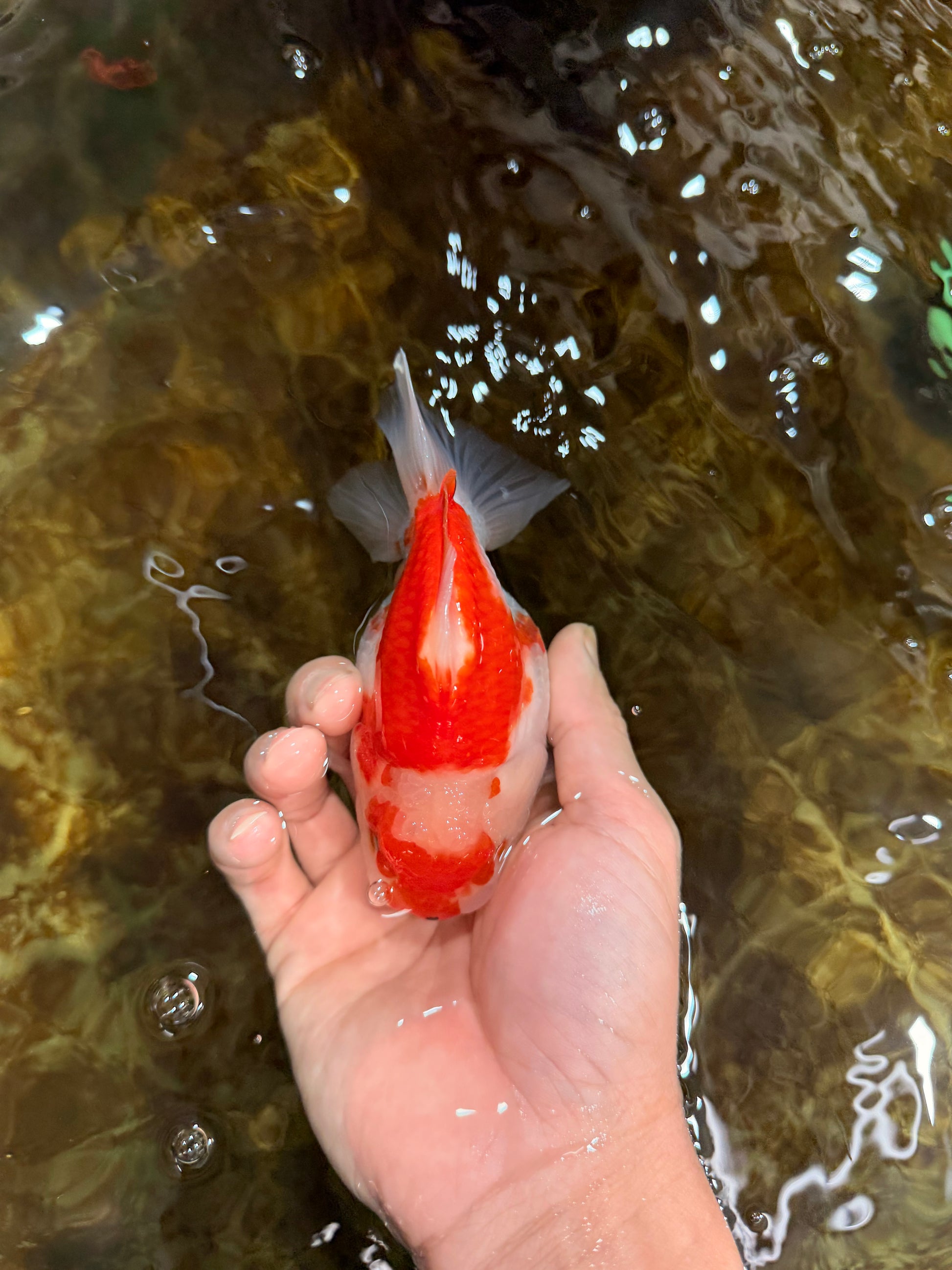 Round, radiant, and happy! This Red White Yuanbao moves gracefully with a joyful glow — a must-have for goldfish lovers.