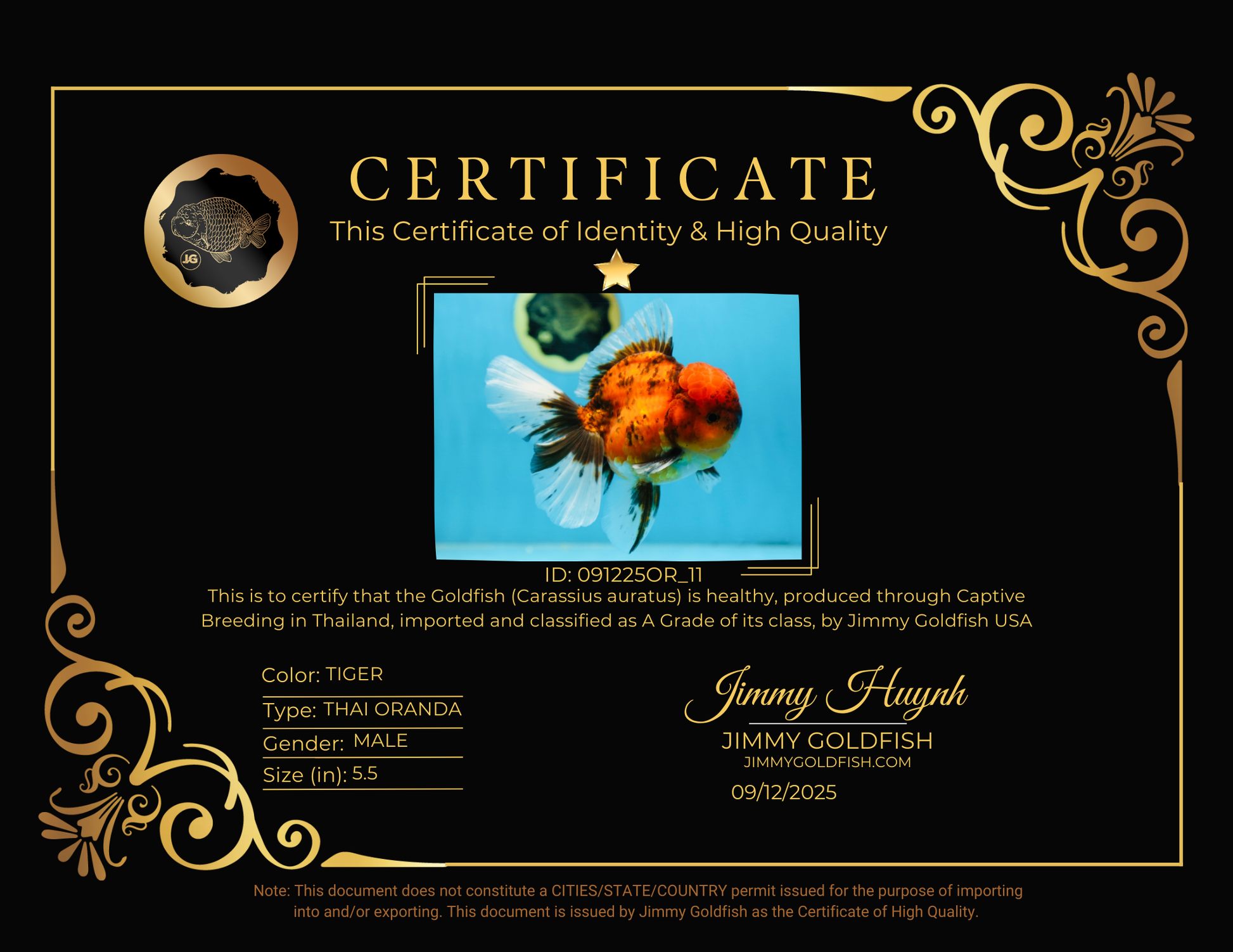 A Grade UNIQUE Tiger Oranda Male 5.5 inches #091225OR_11