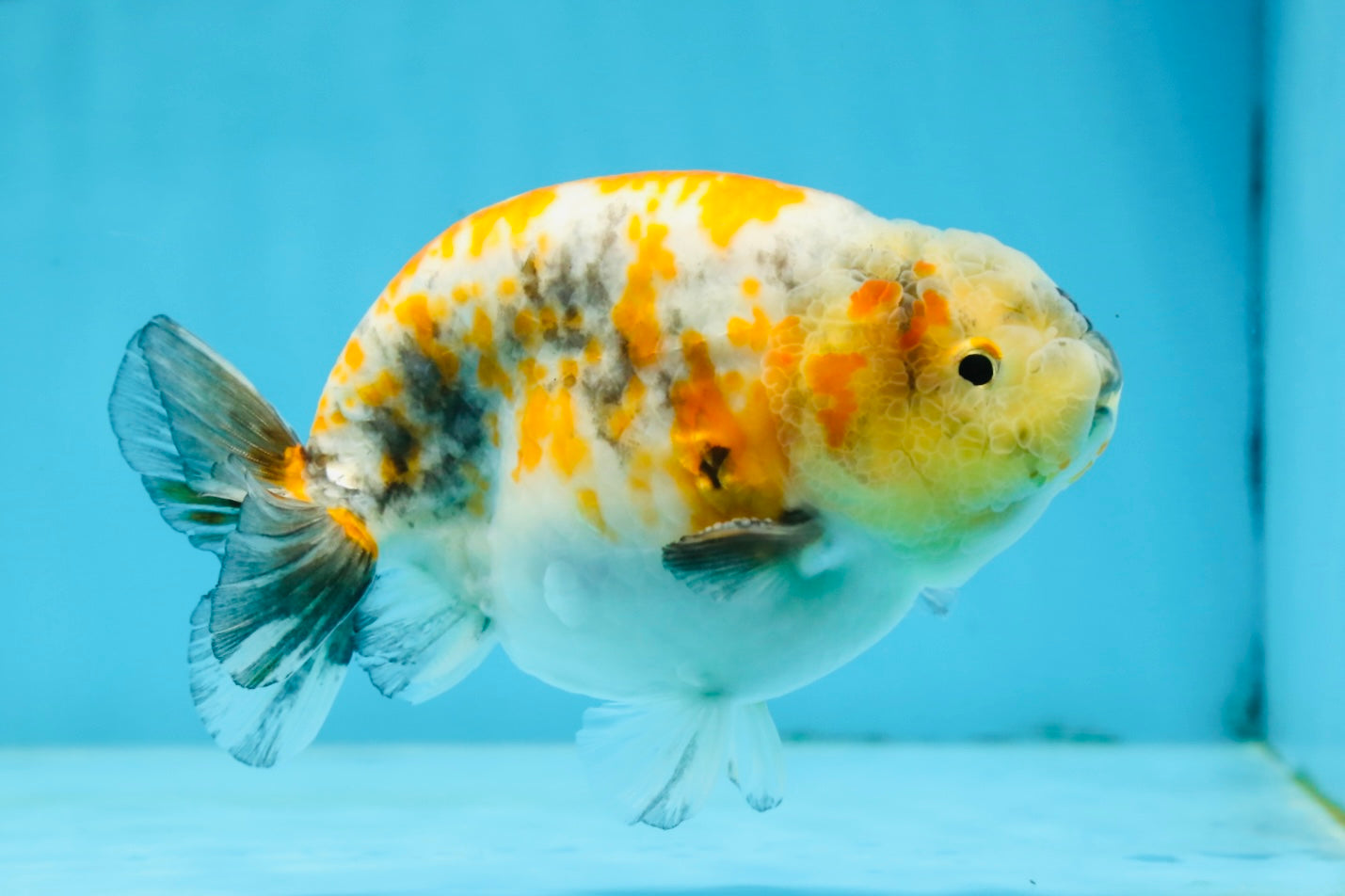 This cutie is a party in motion! With marble tricolor splashes and strong movement, he brings joy every swim