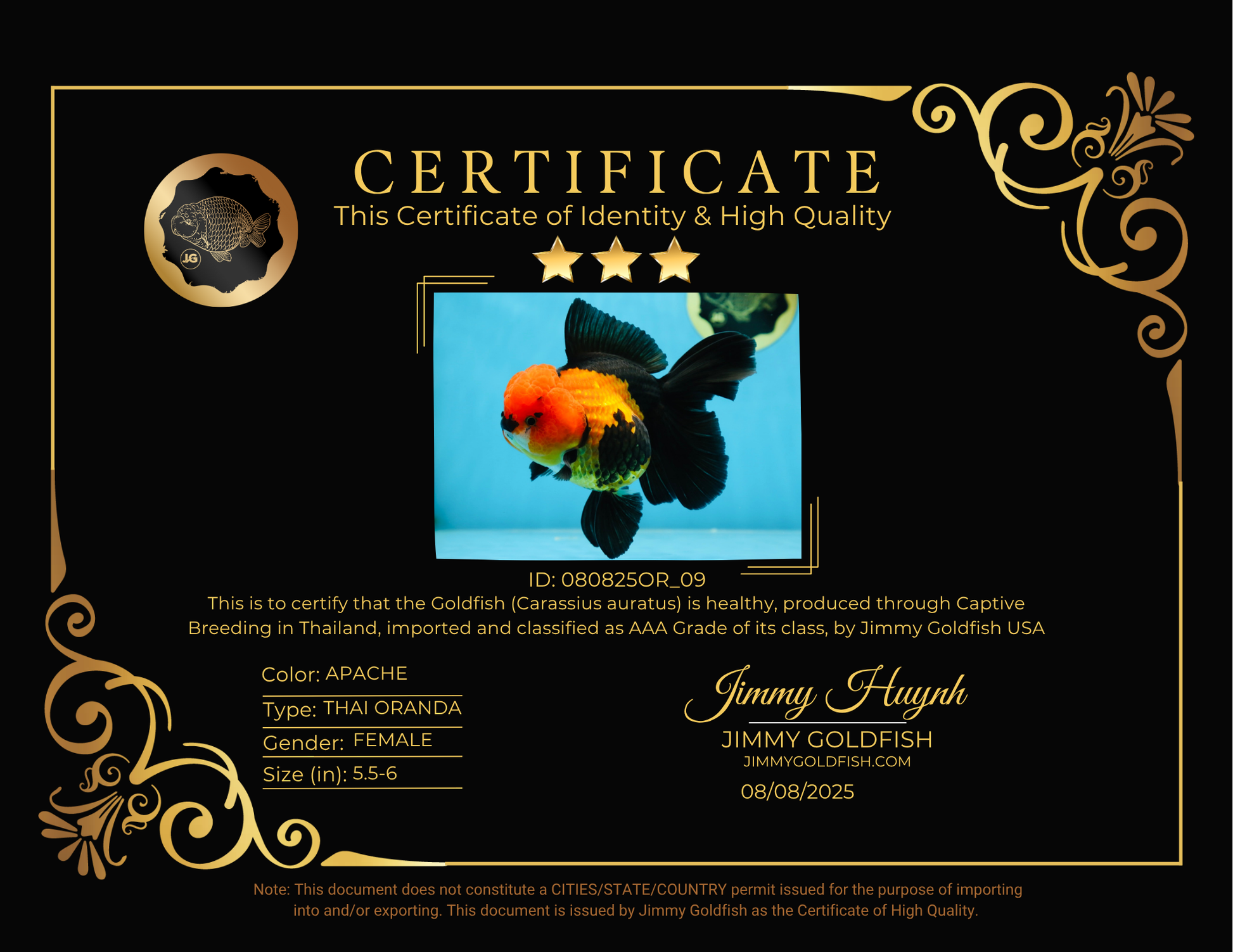 AAA Grade UNIQUE Apache Oranda Female 5.5-6 inches #080825OR_09