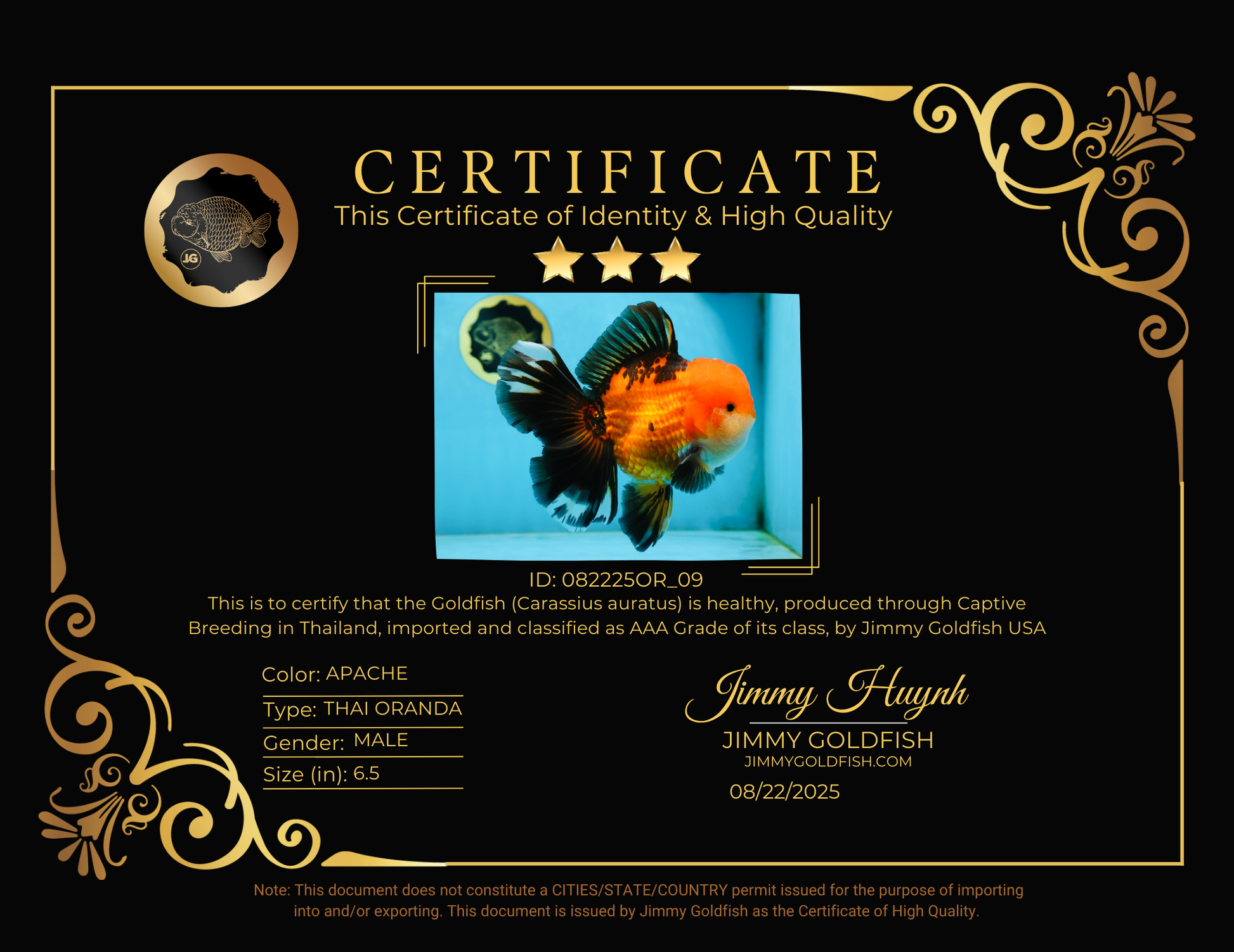 NEMO AAA Grade Apache Oranda Male 6.5 inches #082225OR_09