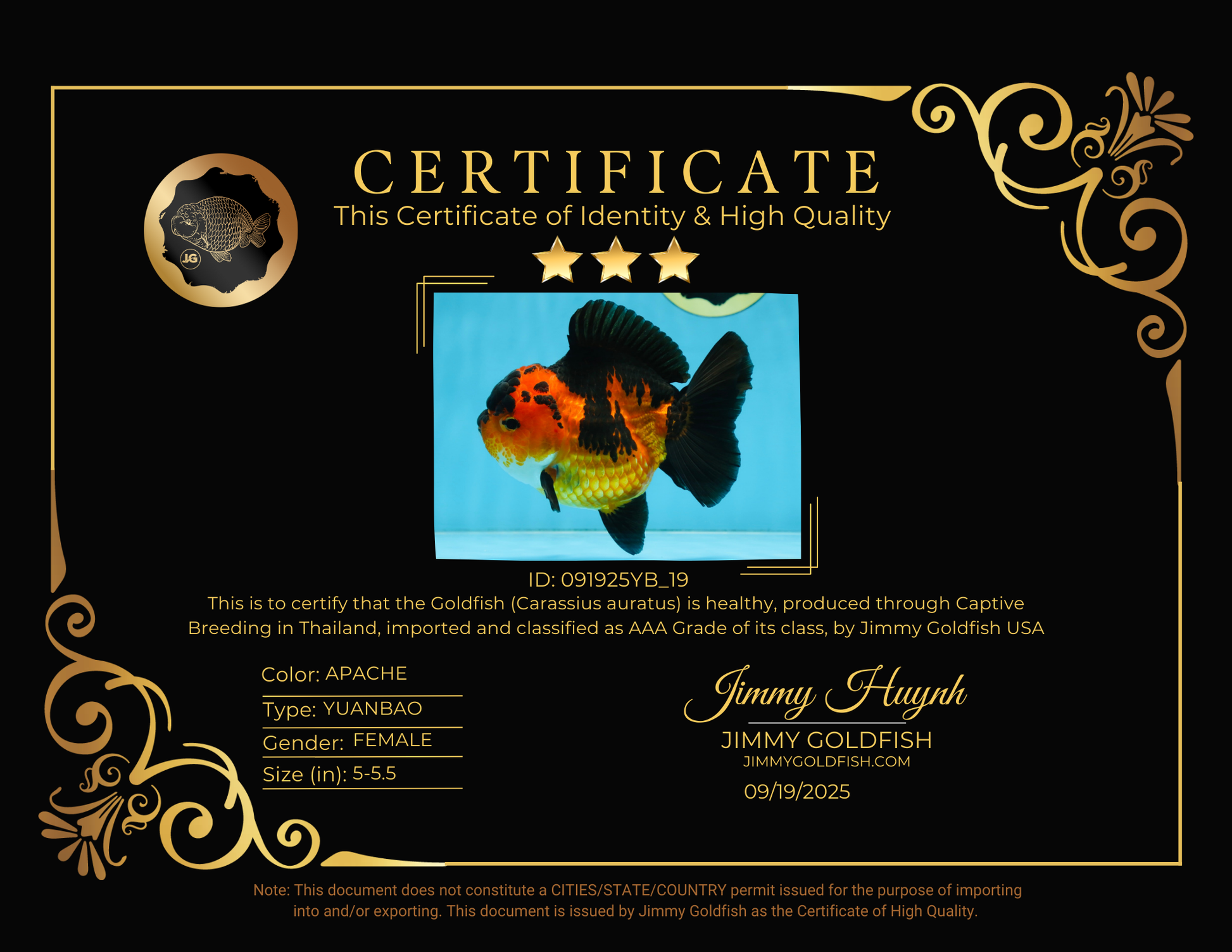 AAA Grade FIRE Apache Yuanbao Female 5-5.5 inches #091925YB_19
