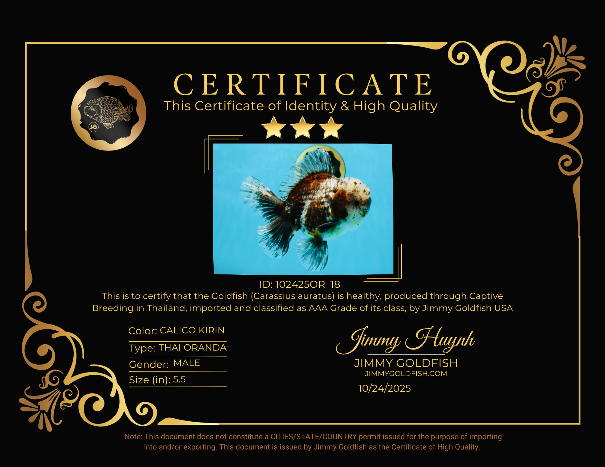 CHONKY AAA Grade Calico Kirin Oranda Male 5.5 inches #102425OR_18