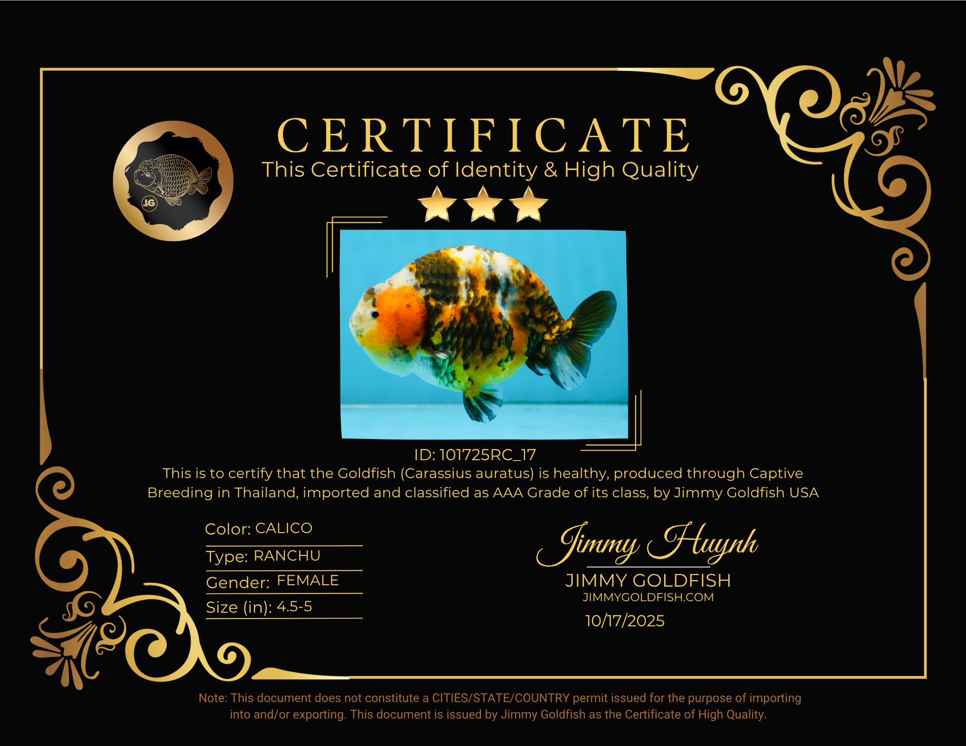 AAA Grade Chinese Calico Ranchu Female 4.5-5 inches #101725RC_17