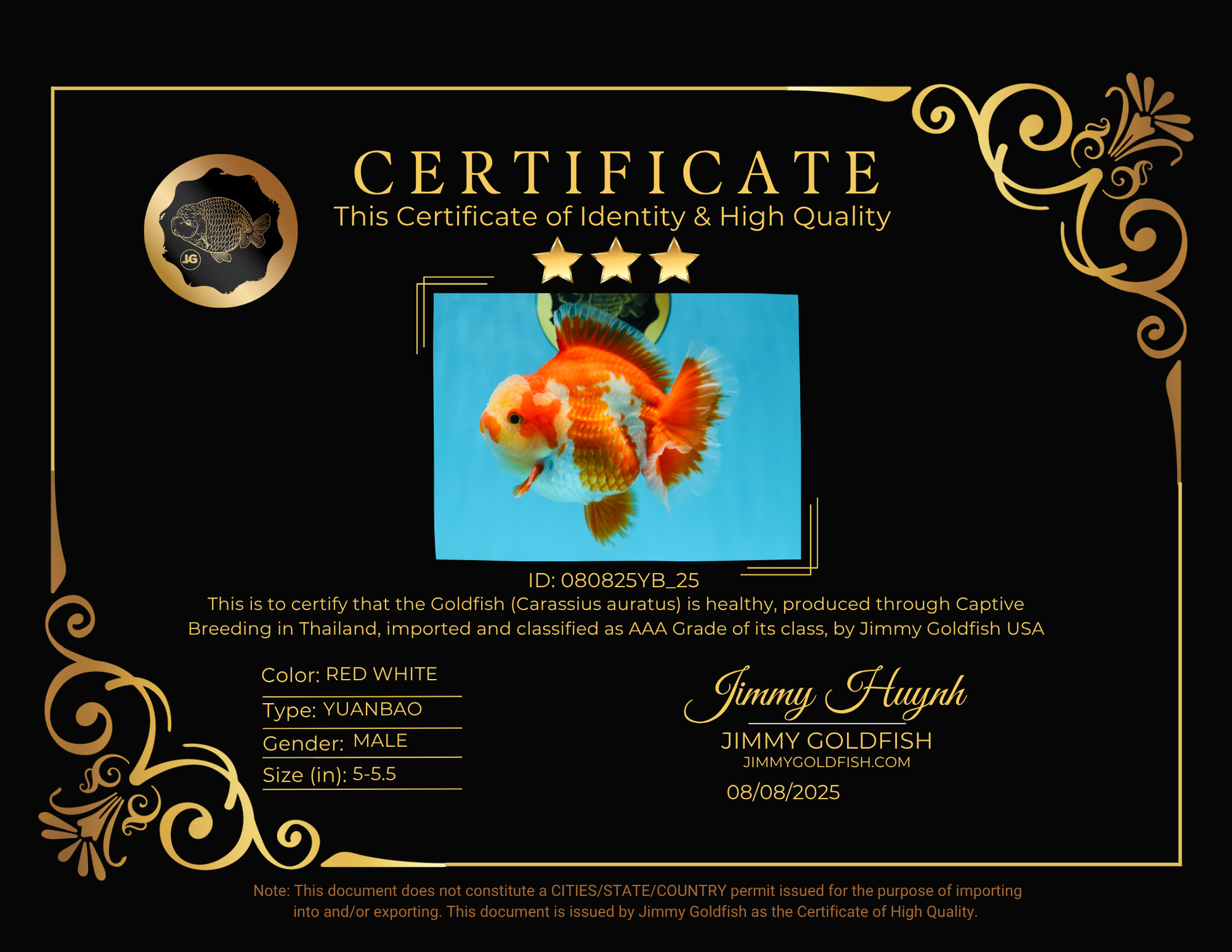 Health: Every fish has completed our strict quarantine procedure. Healthy and active condition. Disease-free guarantee.