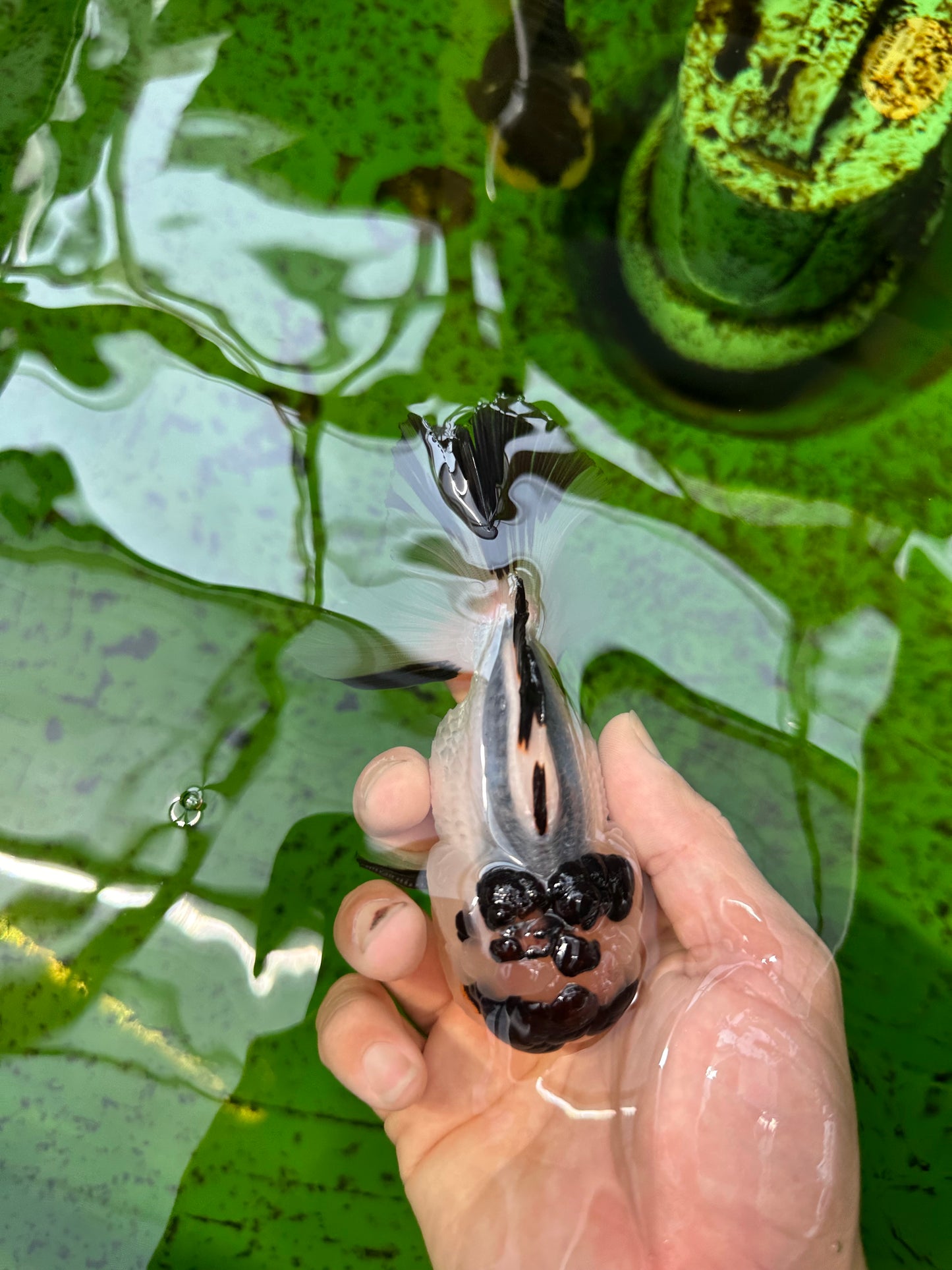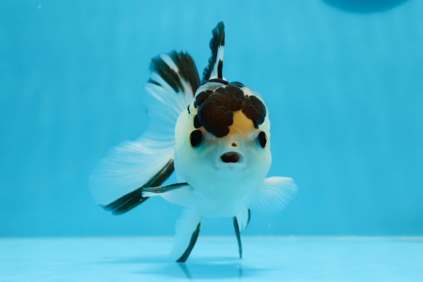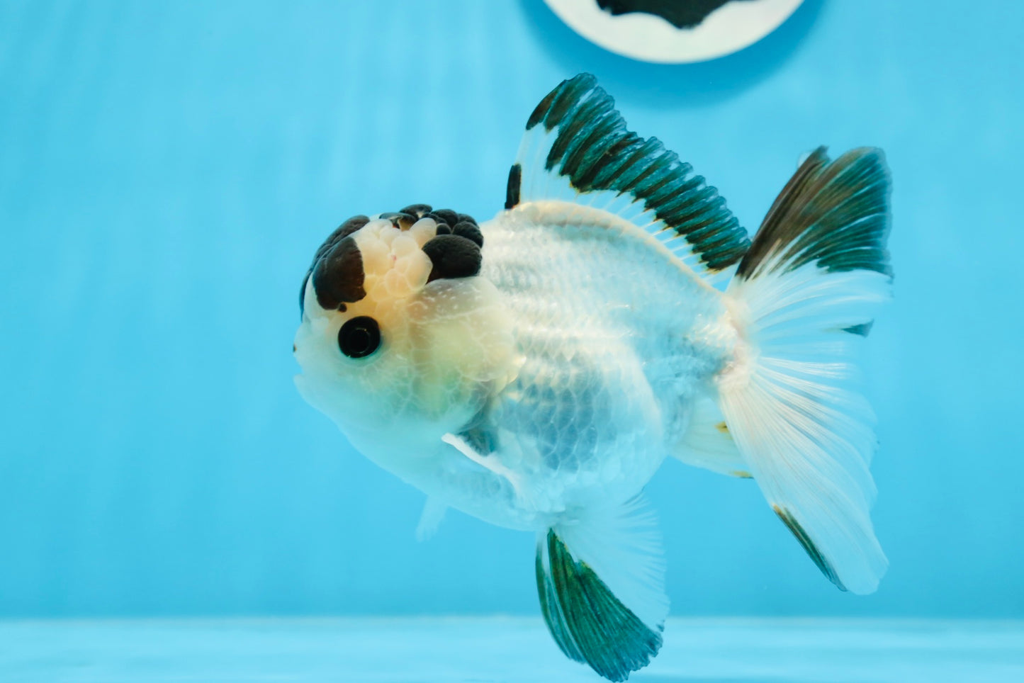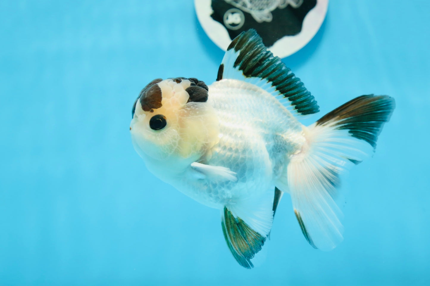 Meet the adorable AAA Grade Panda Button Oranda! With its unique panda button eyes and beautiful color markings, this premium goldfish is sure to steal your heart. Its chunky body and rounded belly make it one of a kind, and its super healthy and high grade #JimmyStyle will keep it swimming in style (while still being a bit silly).