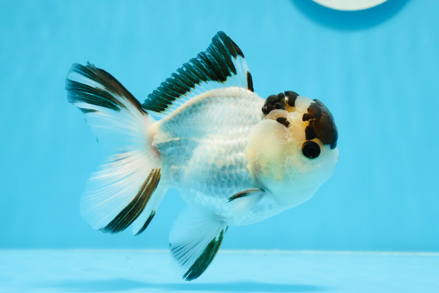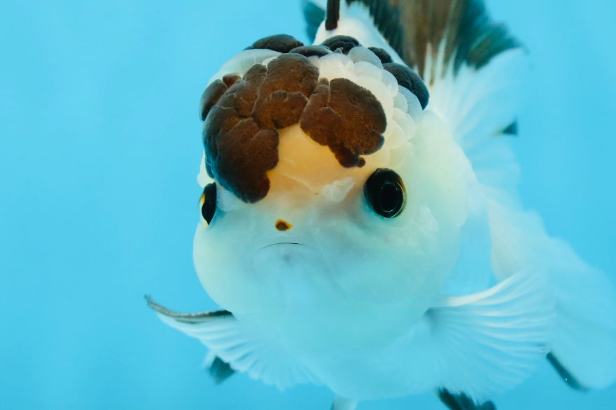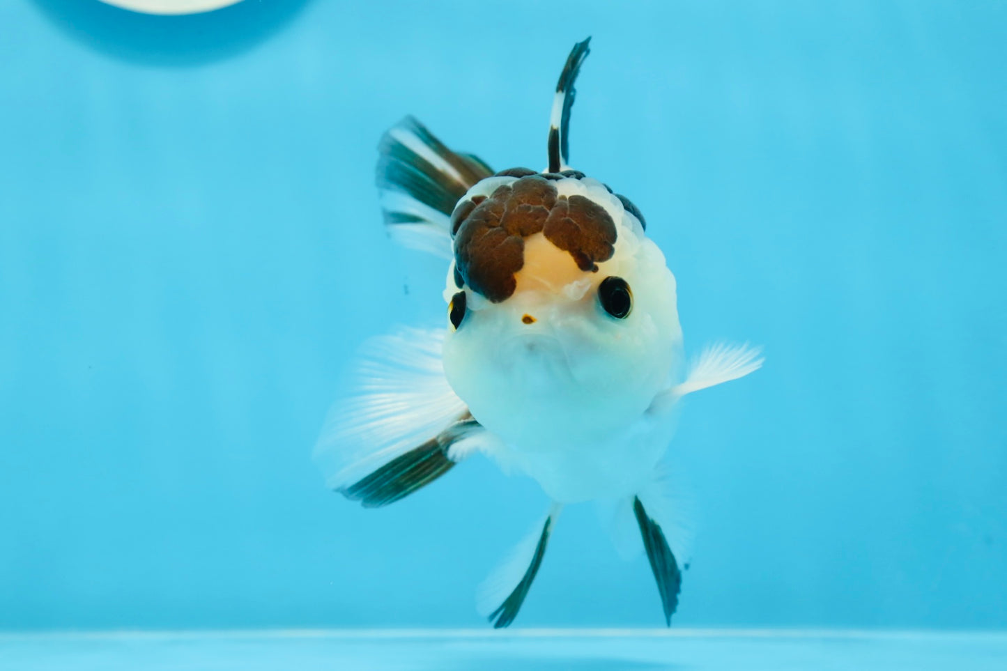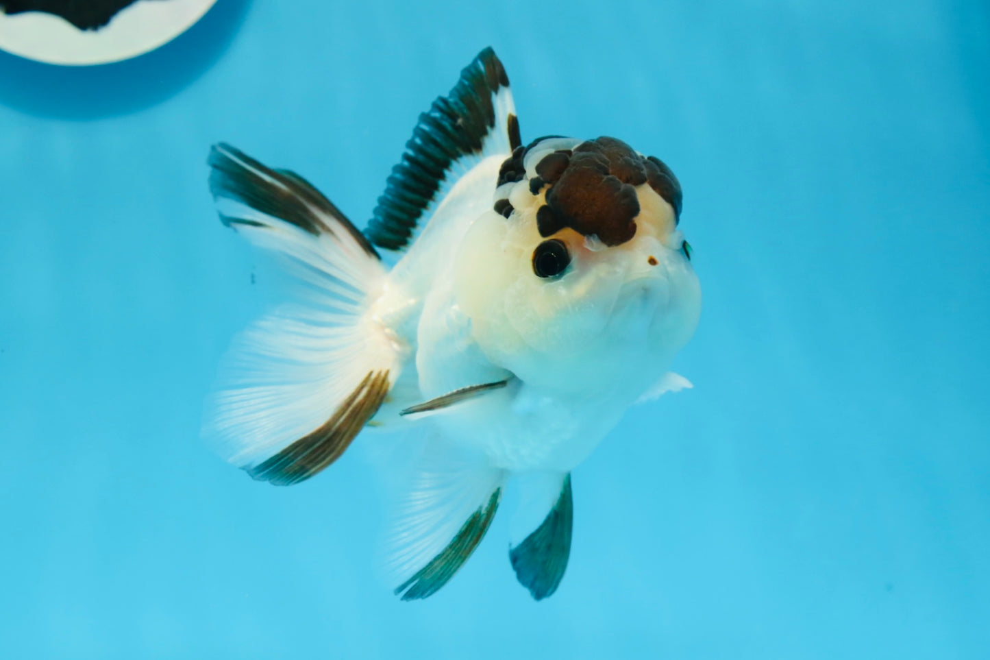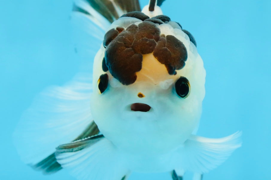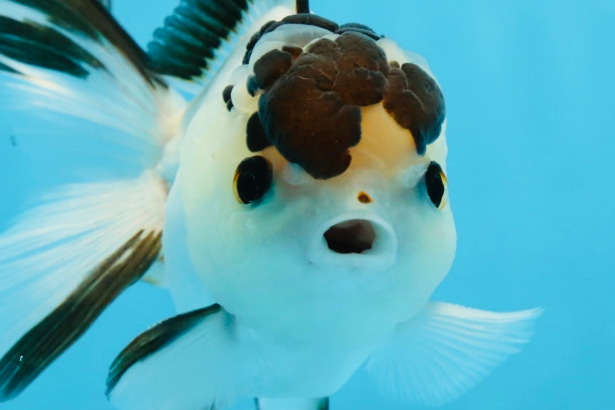 Meet the adorable AAA Grade Panda Button Oranda! With its unique panda button eyes and beautiful color markings, this premium goldfish is sure to steal your heart. Its chunky body and rounded belly make it one of a kind, and its super healthy and high grade #JimmyStyle will keep it swimming in style (while still being a bit silly).