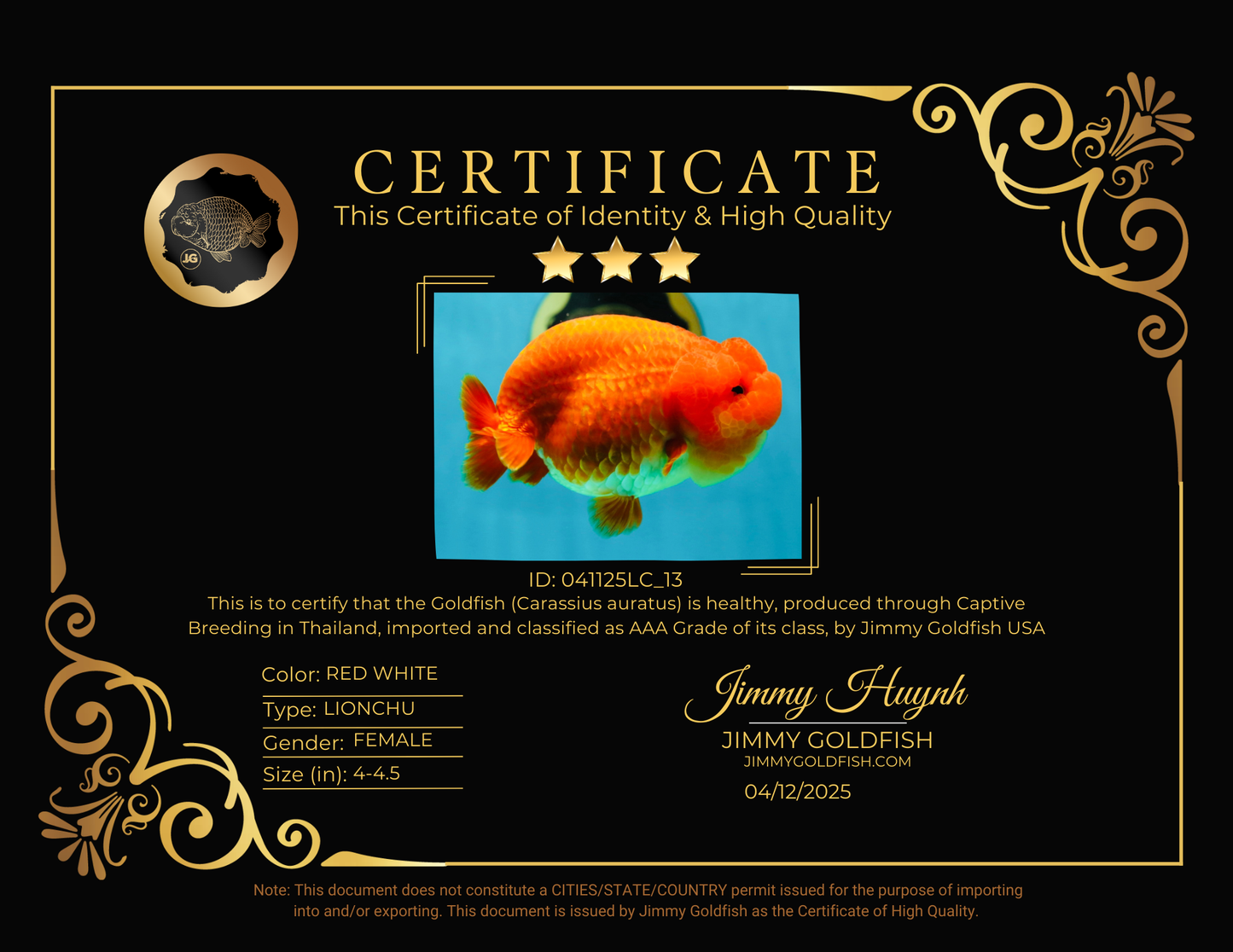 Health: Every fish has completed our strict quarantine procedure. Healthy and active condition. Disease-free guarantee.