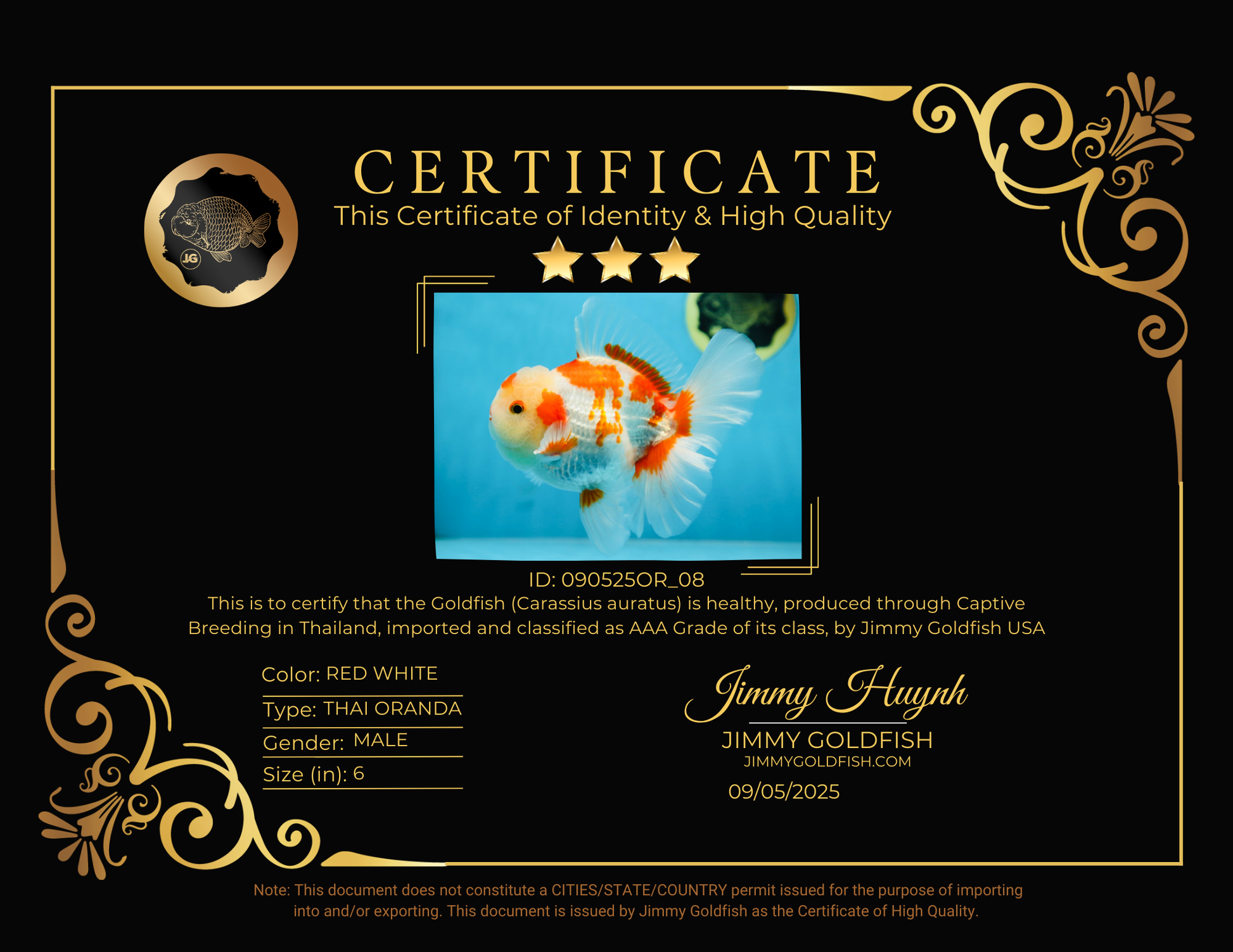 Health: Every fish has completed our strict quarantine procedure. Healthy and active condition. Disease-free guarantee.