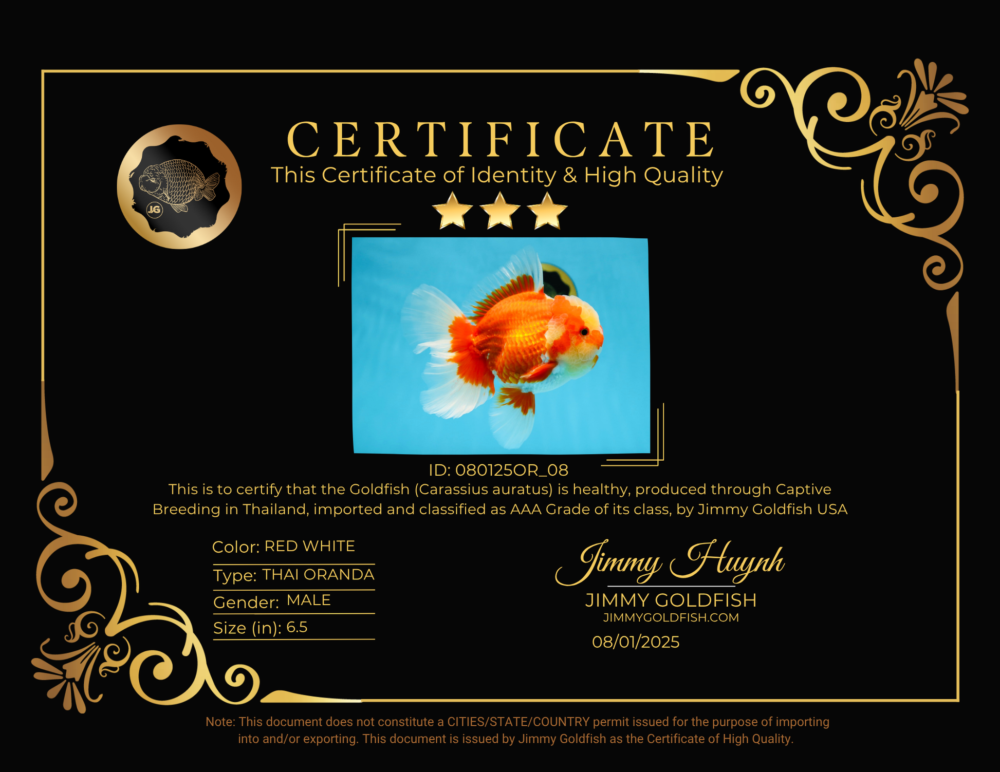 AAA Grade Red White Oranda Male 6.5 inches #080125OR_08