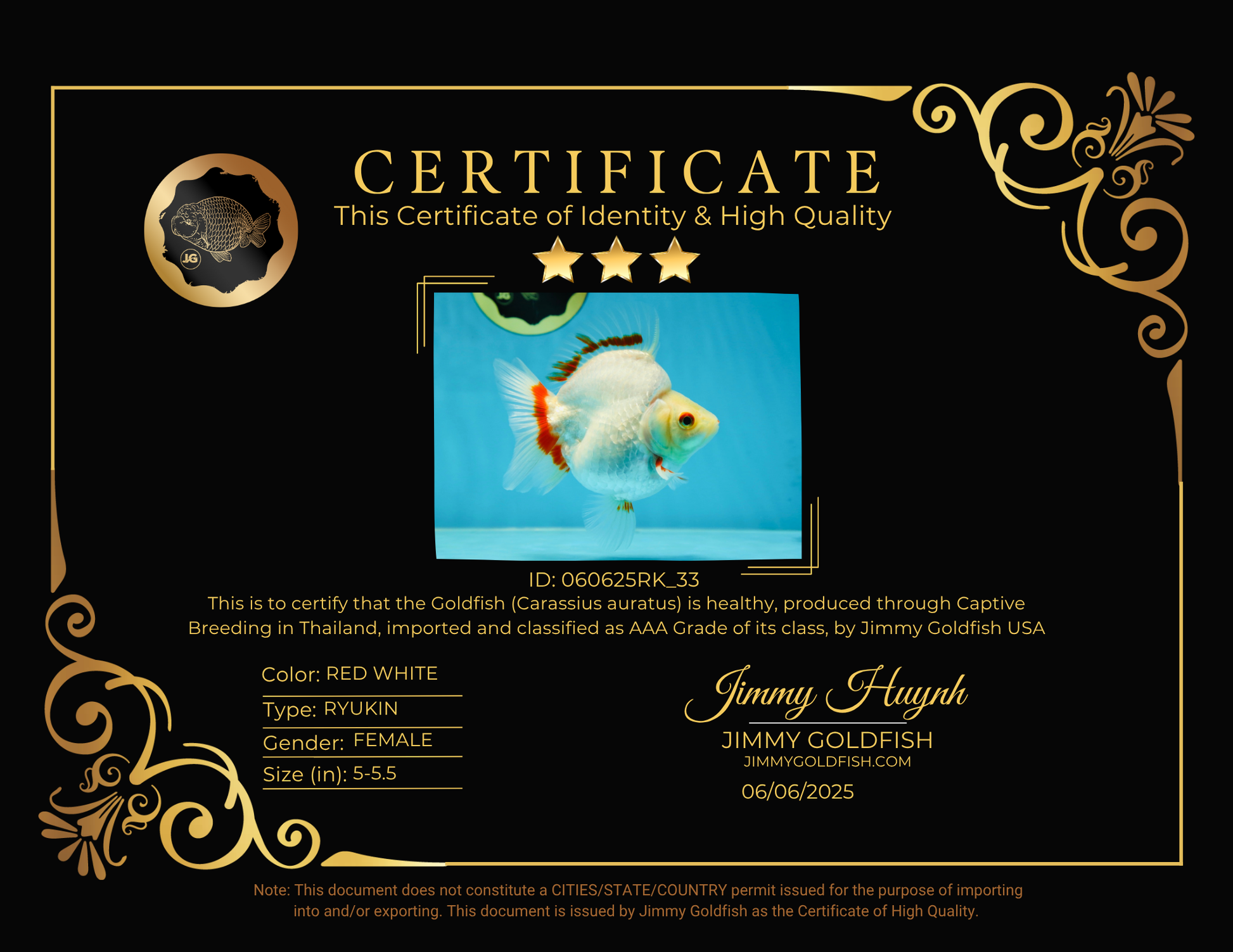 AAA Grade Red White Ryukin Female 5-5.5 inches #060625RK_33