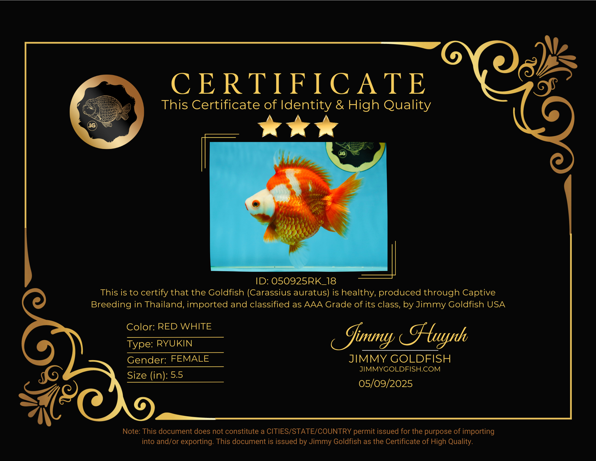 AAA GRADE Red White Ryukin Female 5.5 inches #050925RK_18