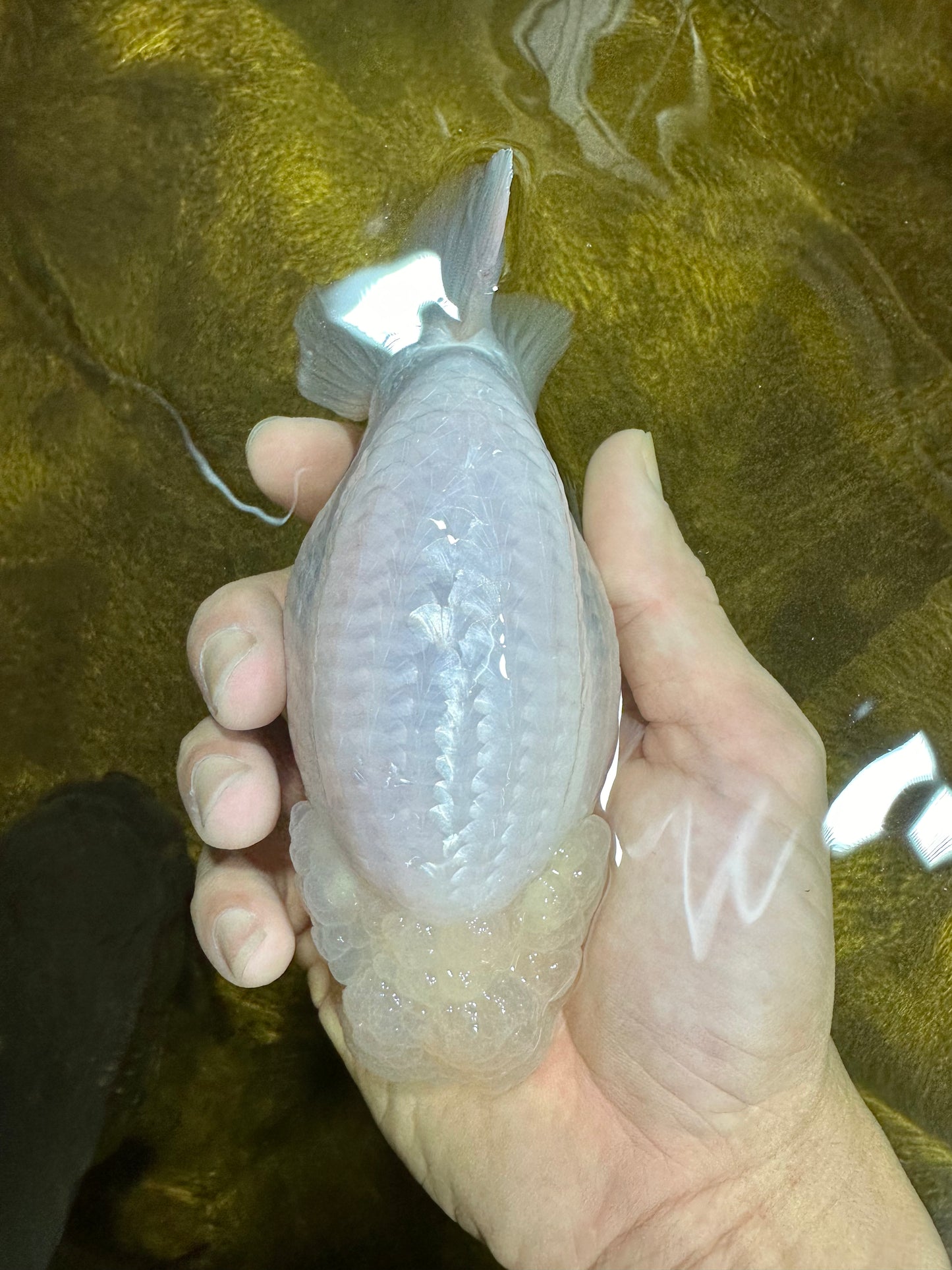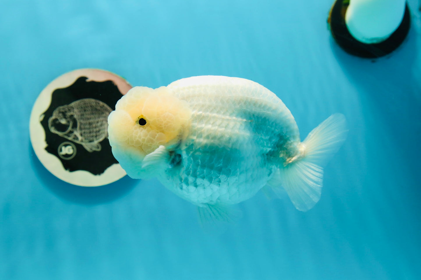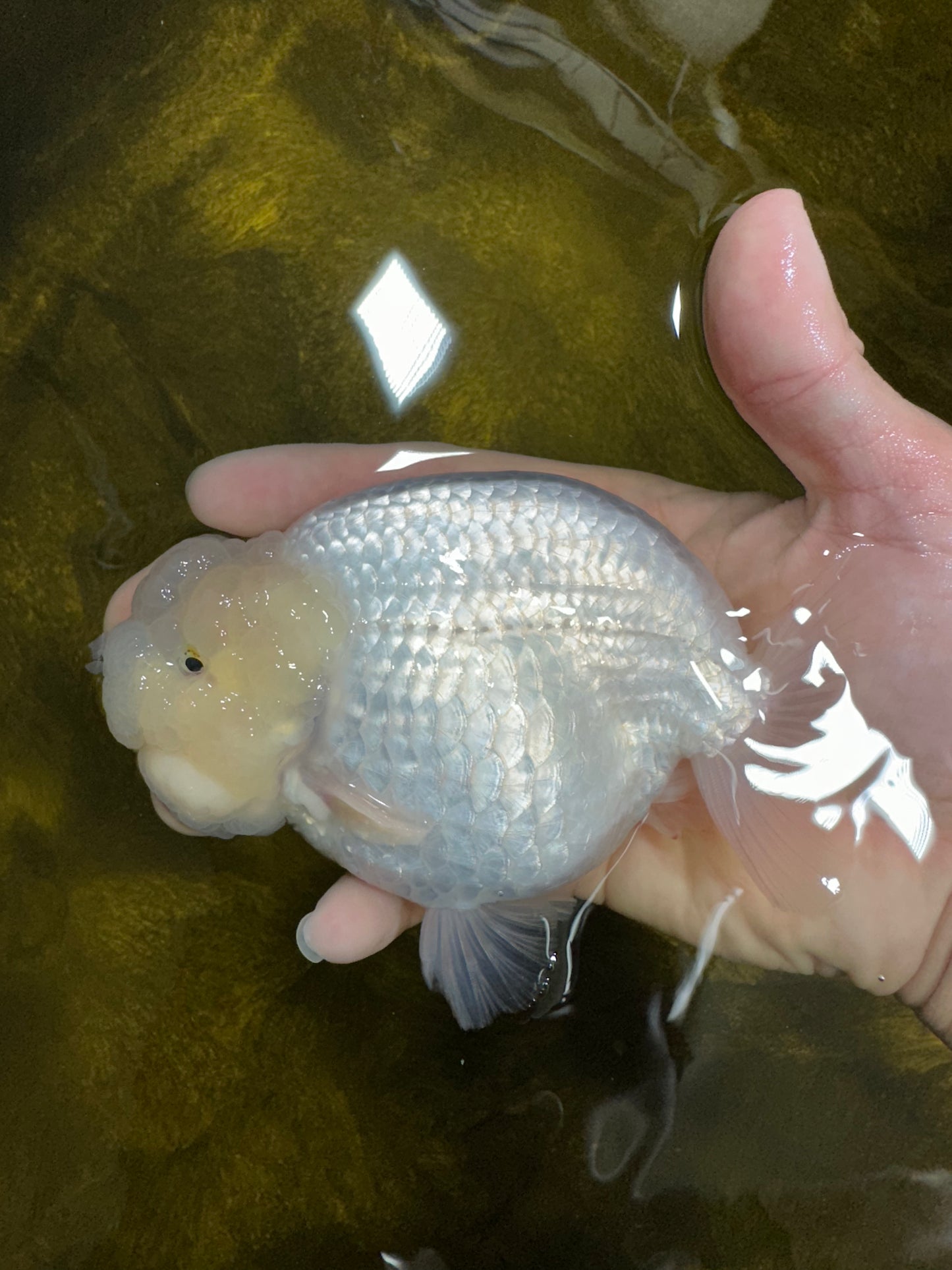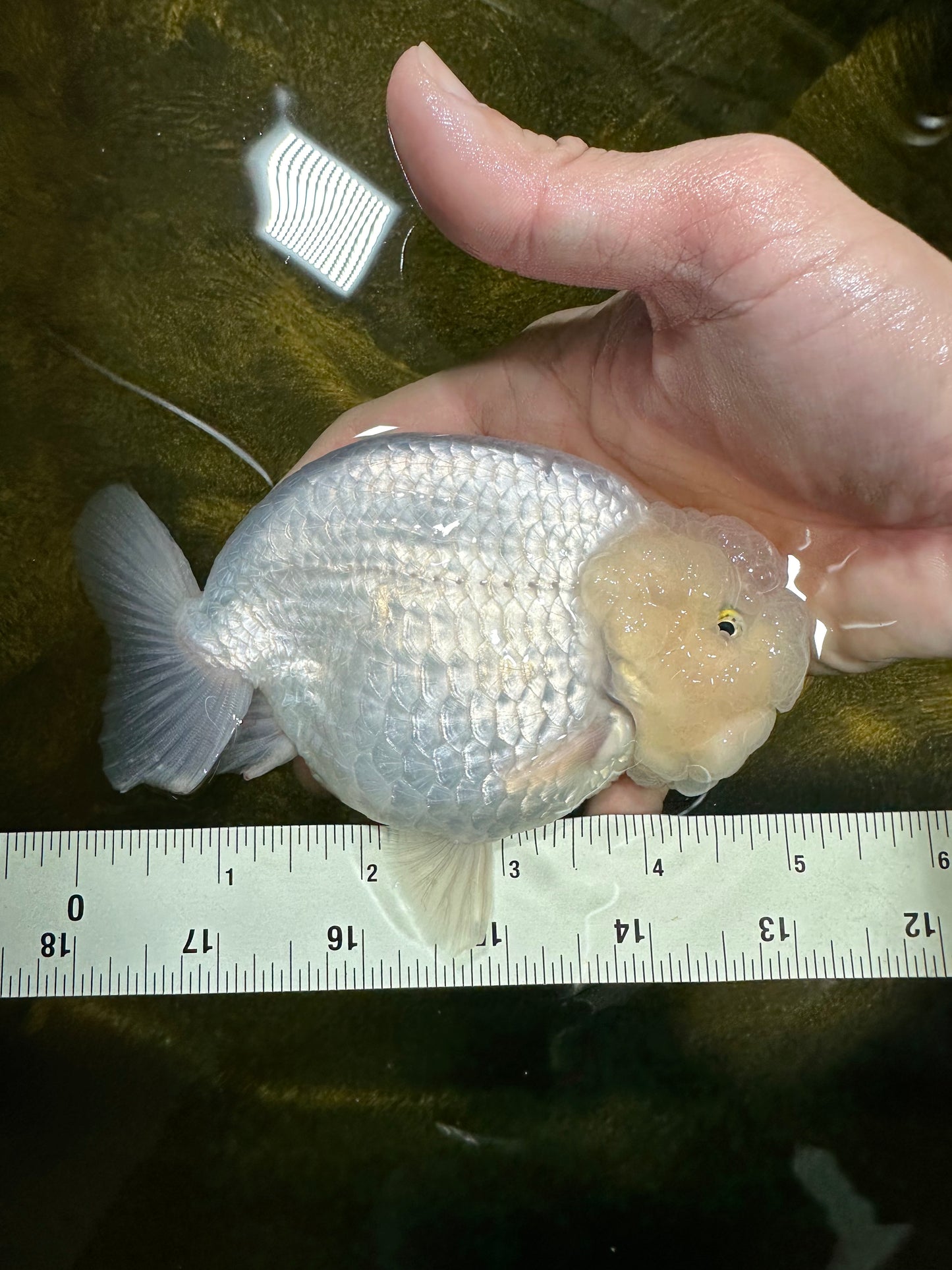 Feel the power of a "AAA Grade Snow White LionKing" in your pond! This 5 inch fish is packed with features like a "unique", "high quality" body, "beautiful" character, and chunky "rounded belly". Plus, it's "super healthy" and comes with a "premium" grade Jimmy Style! Get your LionKing today! ;)