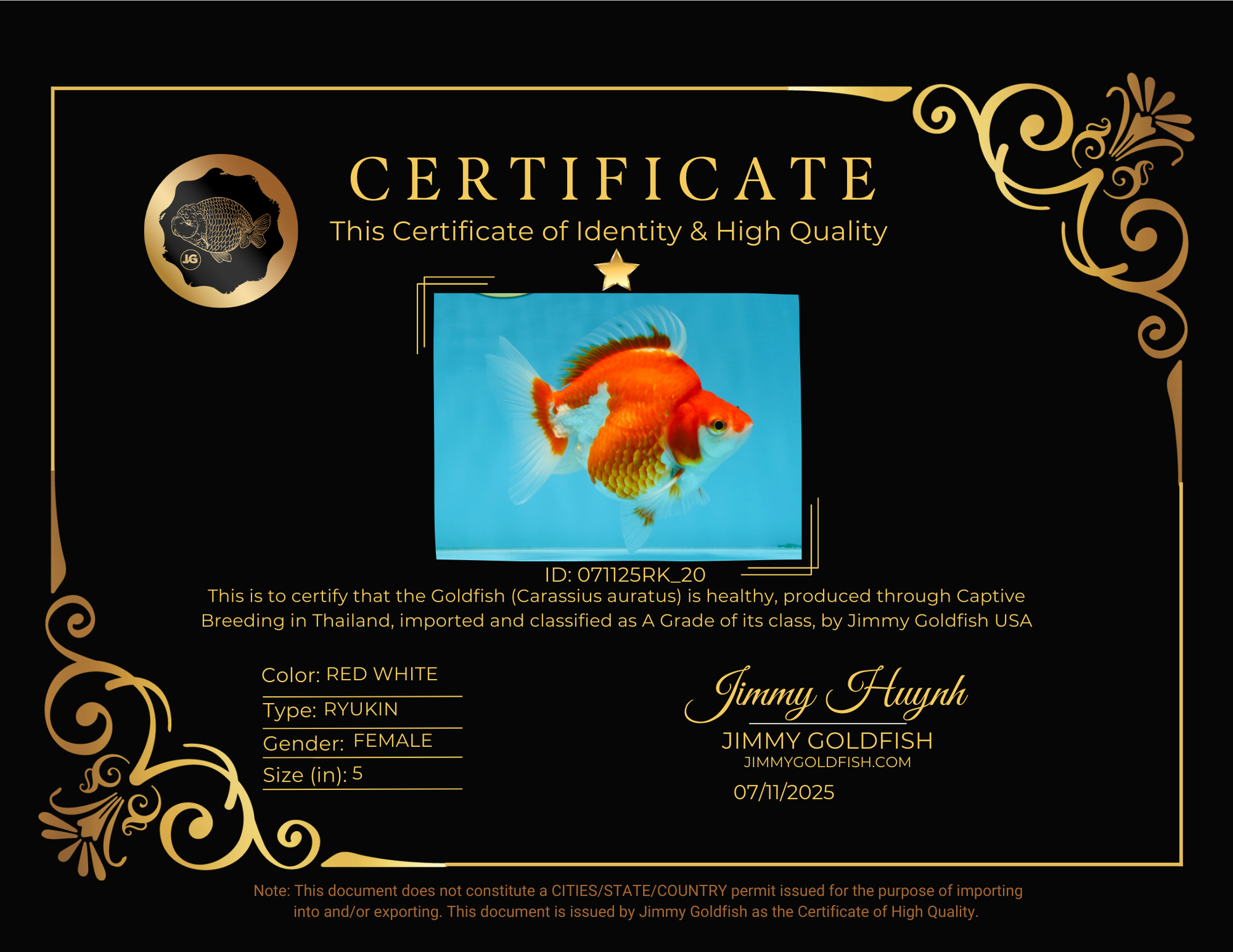 Health: Every fish has completed our strict quarantine procedure. Healthy and active condition. Disease-free guarantee.