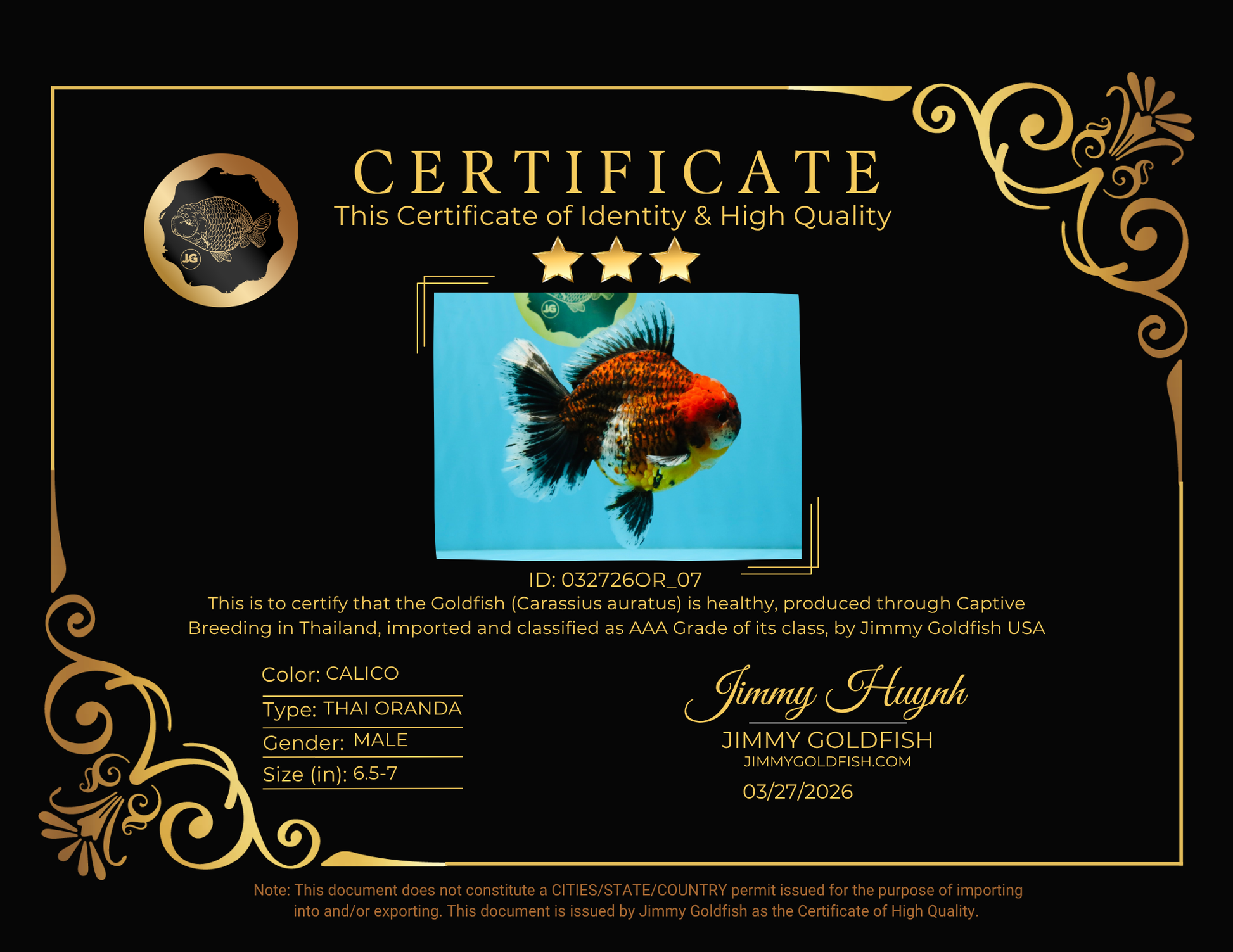 CHUNKY SUPER AAA Grade Godzilla Calico Oranda Male 6.5-7 inches #032726OR_07