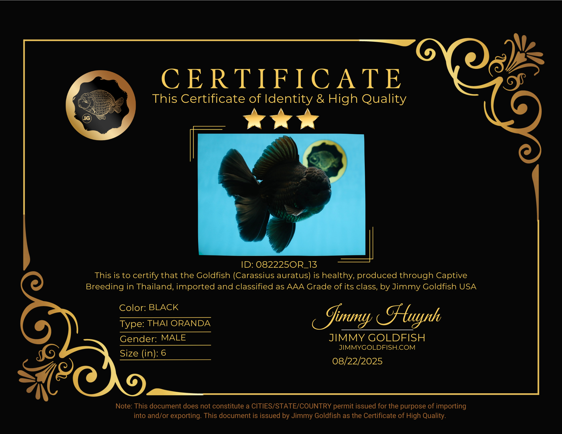 CHONKY AAA Grade Godzilla Black Oranda Male 6 inches #082225OR_13
