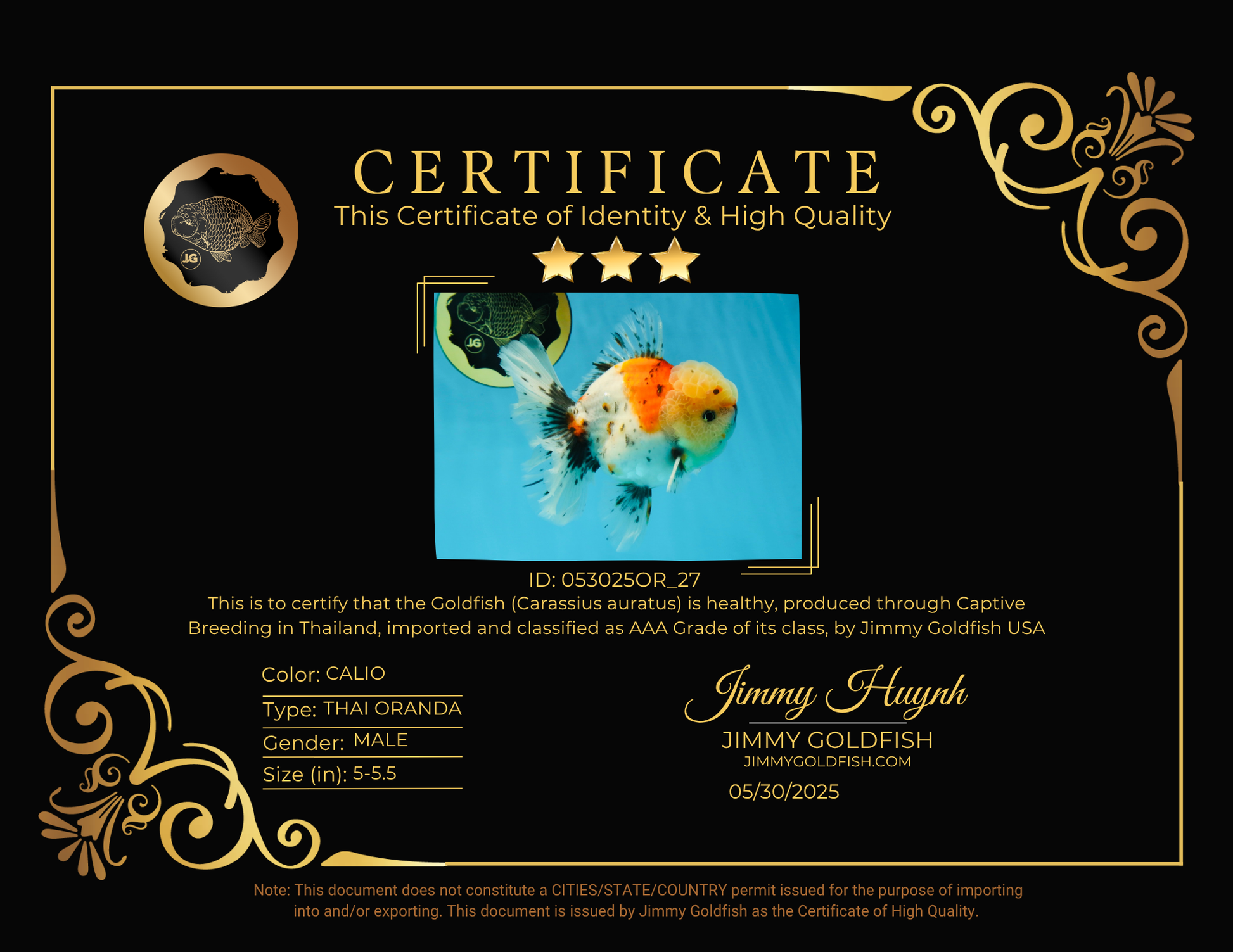AAA Grade Godzilla Pepper Calico Oranda Male 5-5.5 inches #053025OR_27