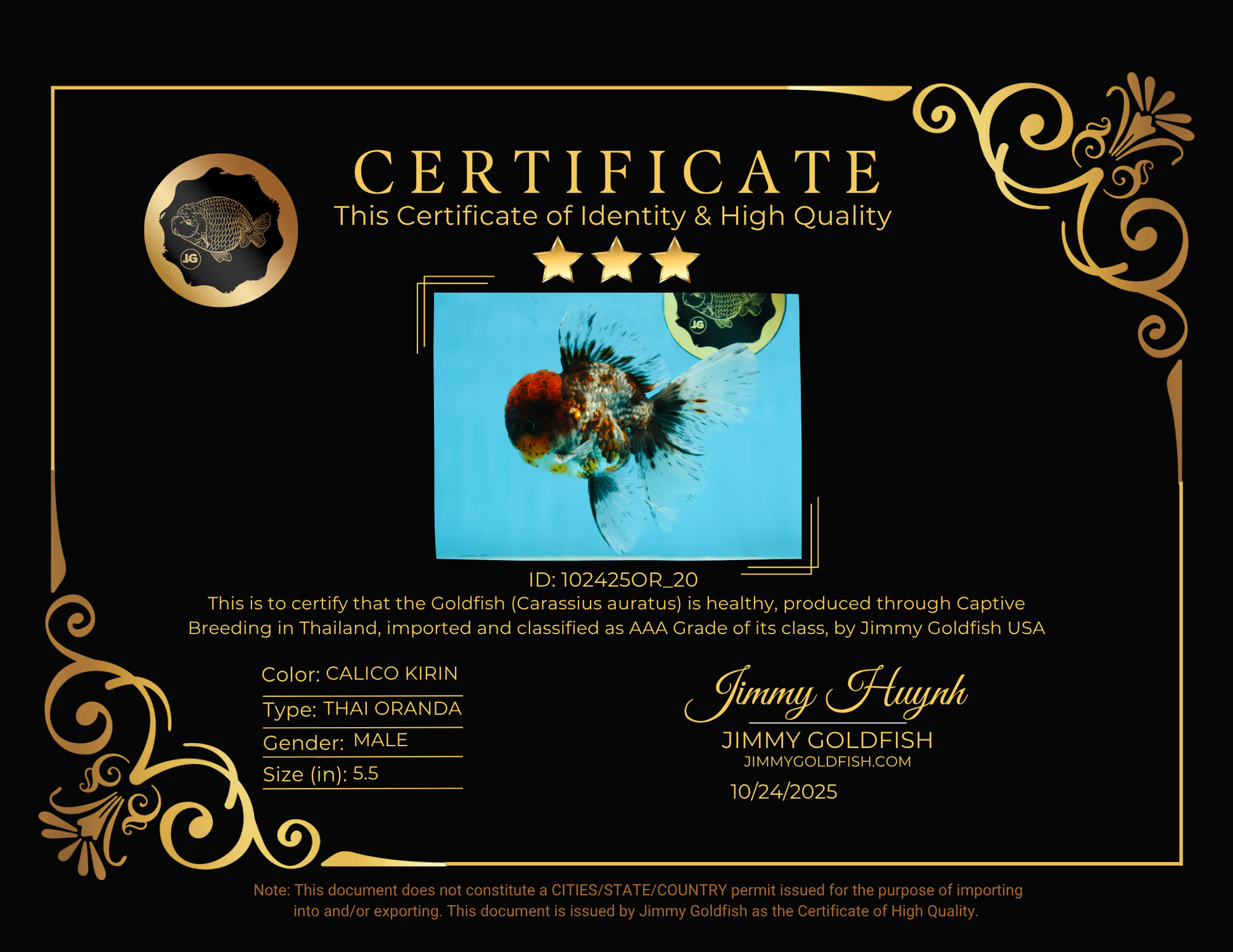 THICK BODY AAA Grade Calico Kirin Oranda Male 5.5 inches #102425OR_20