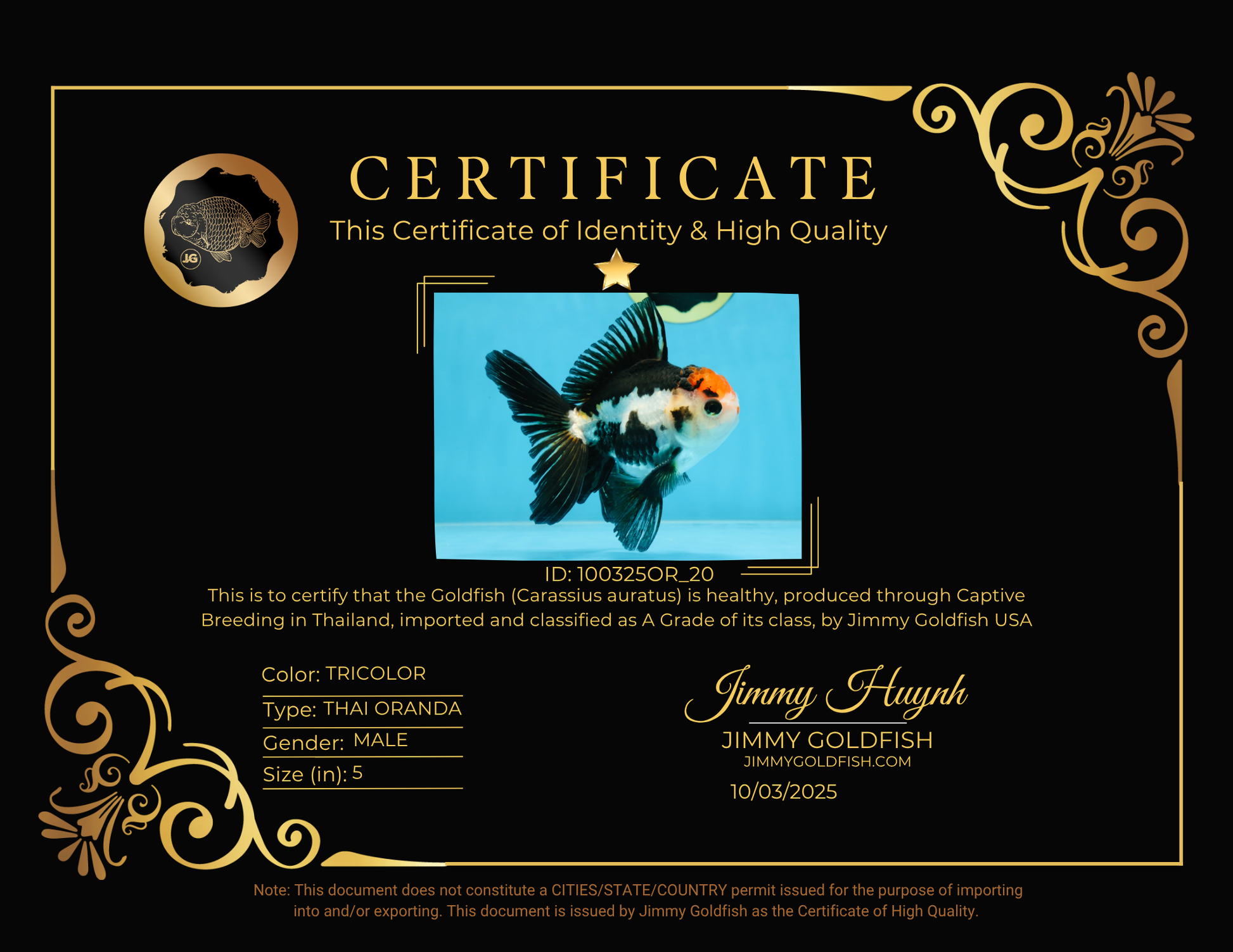 A Grade Tricolor Oranda Male 5 inches #100325OR_20