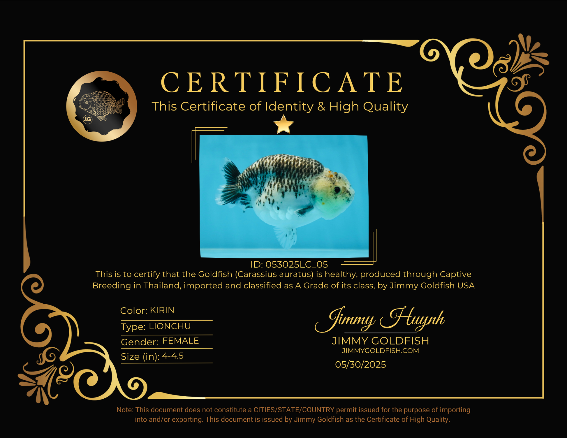 Spotted to perfection with unique kirin markings, this LionQueen boasts grace, premium genetics, and undeniable appeal. A fish keeper's delight!