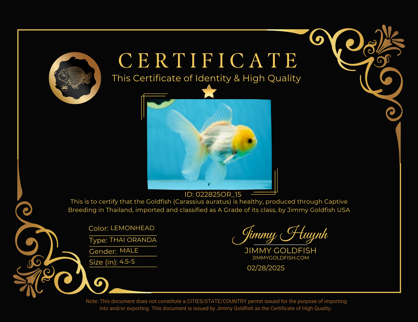 RARE A Grade Super Bright Lemonhead Button Eyes Oranda Male 4.5-5 inches #022825OR_15
