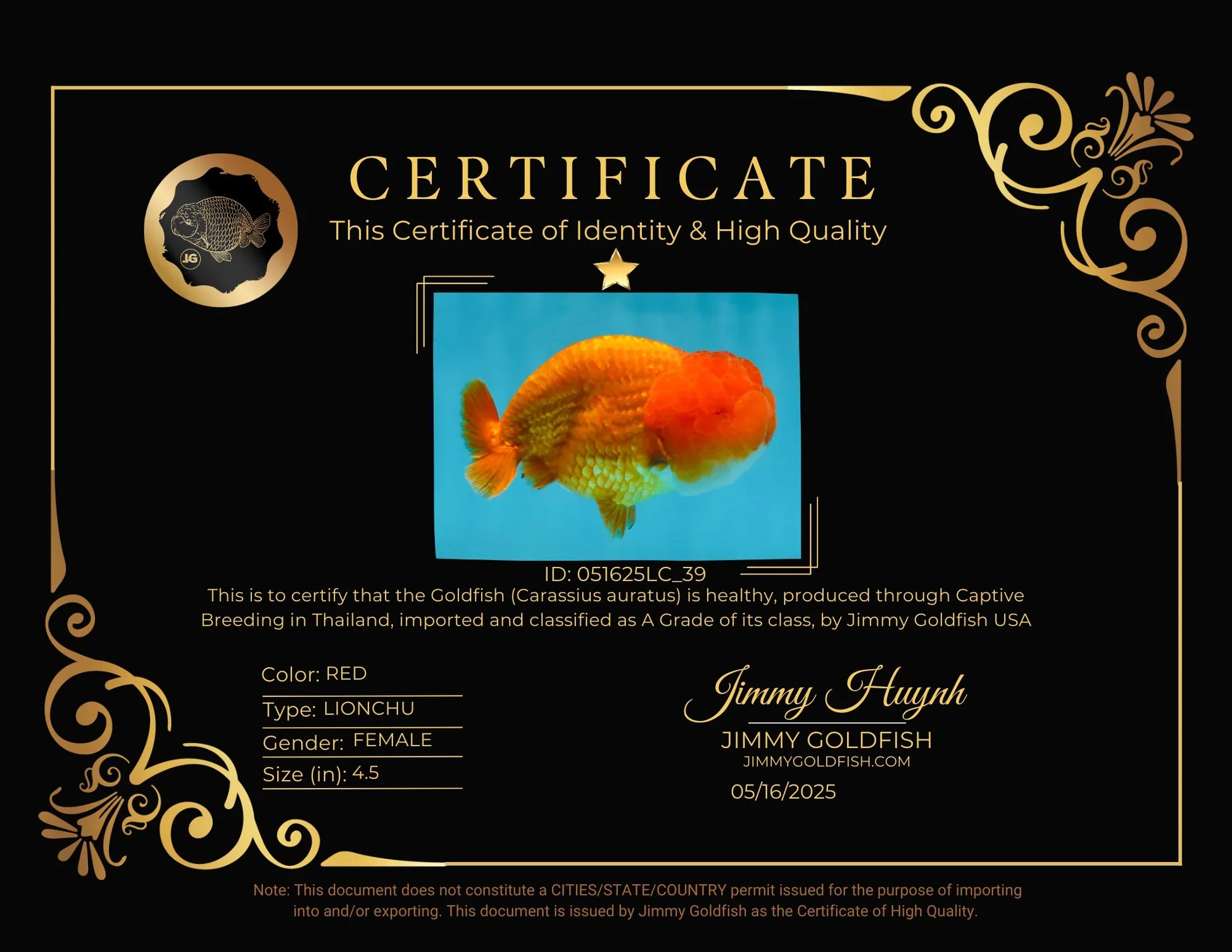 A Big Wen Grade Red LionQueen 4.5 inches #051625LC_39