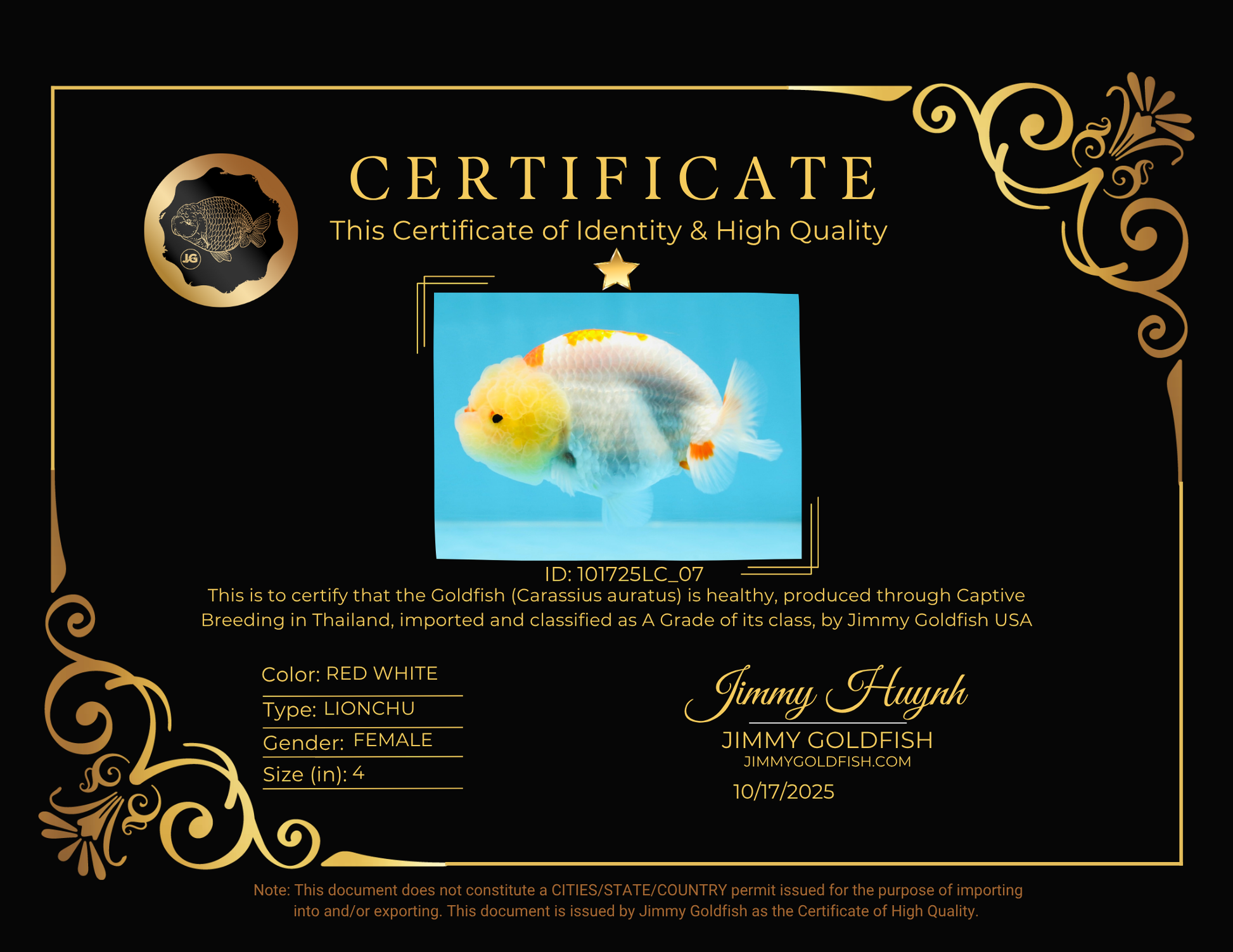 A Grade Red White Kohaku LionQueen 4 inches #101725LC_07