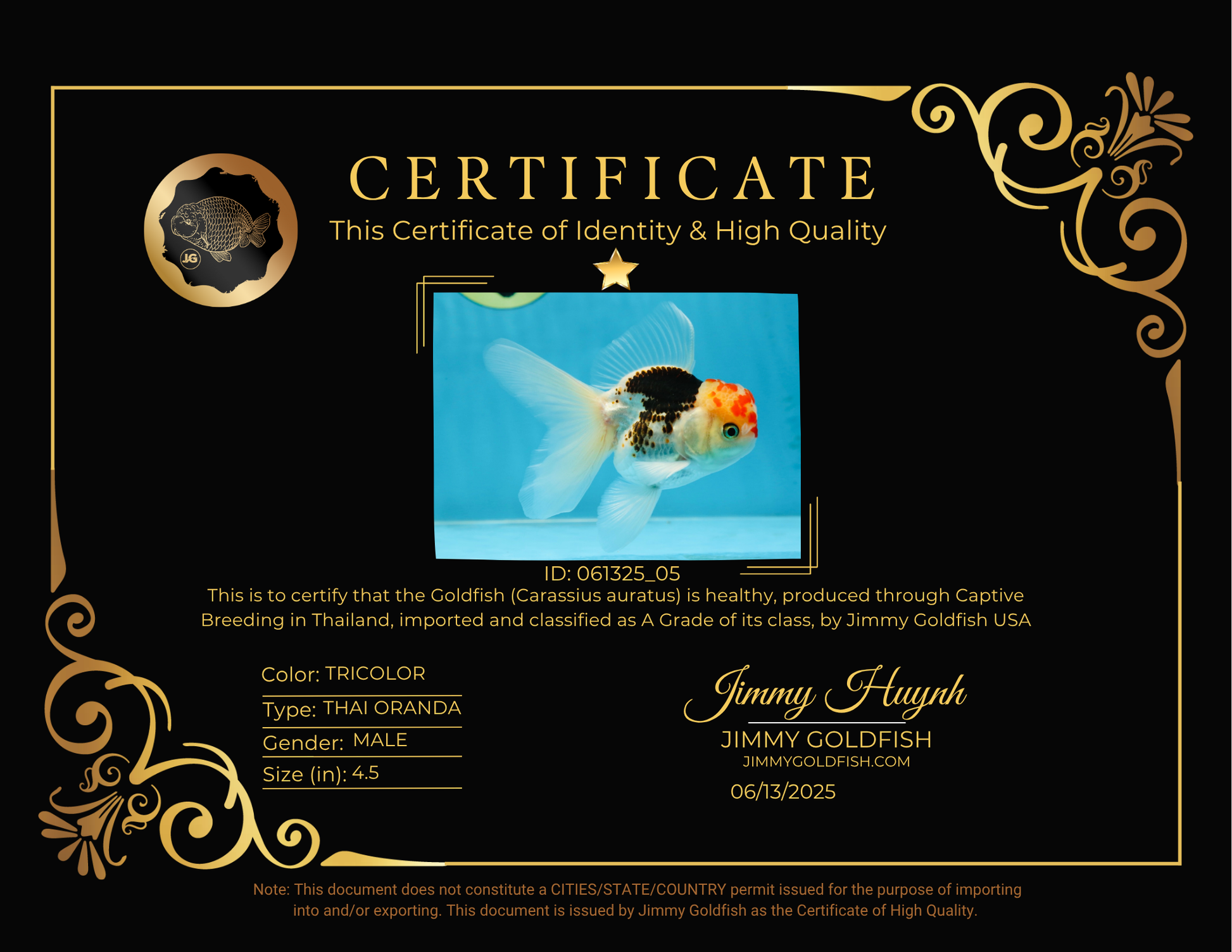 A Grade Young Tricolor Oranda Male 4.5 inches #061325_05