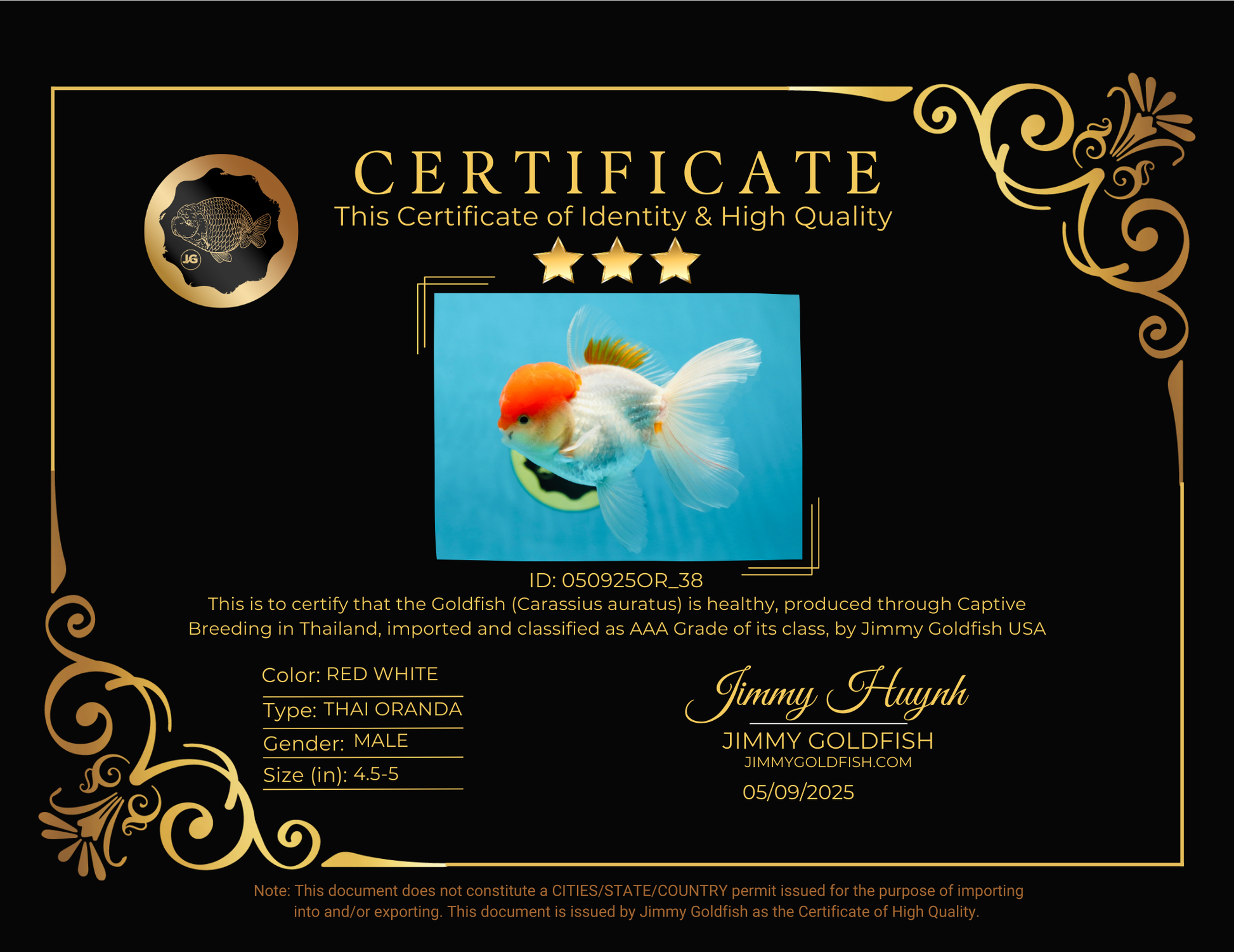 AAA Grade Red Cap Oranda Male 4.5-5 inches #050925OR_38