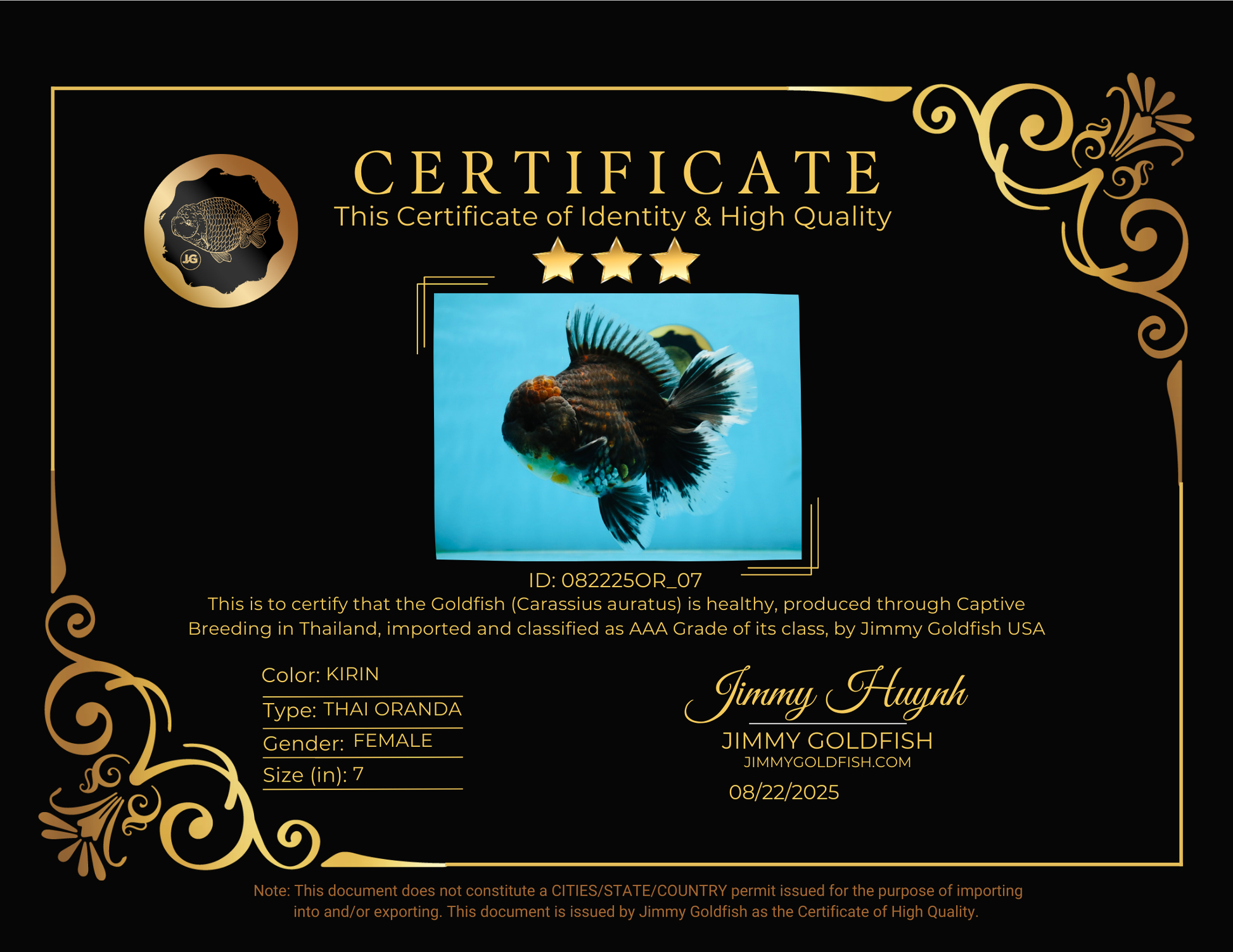 RARE AAA Grade SUPER GIANT Godzilla Kirin Oranda Female 7 inches #082225OR_07
