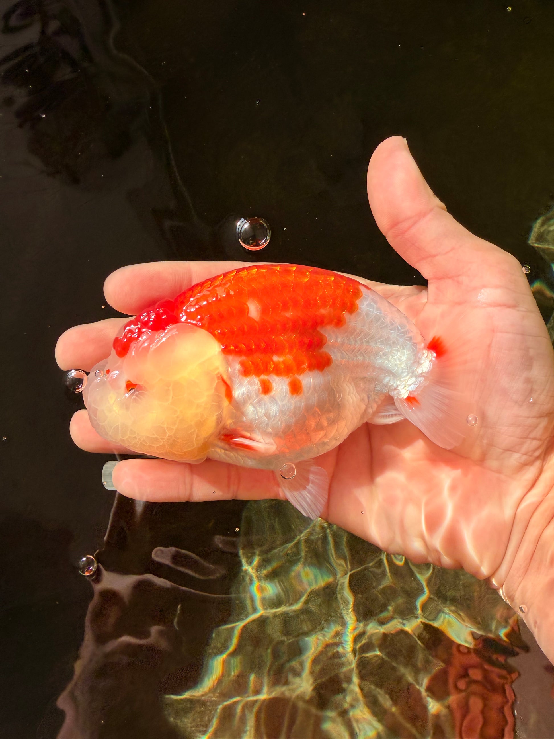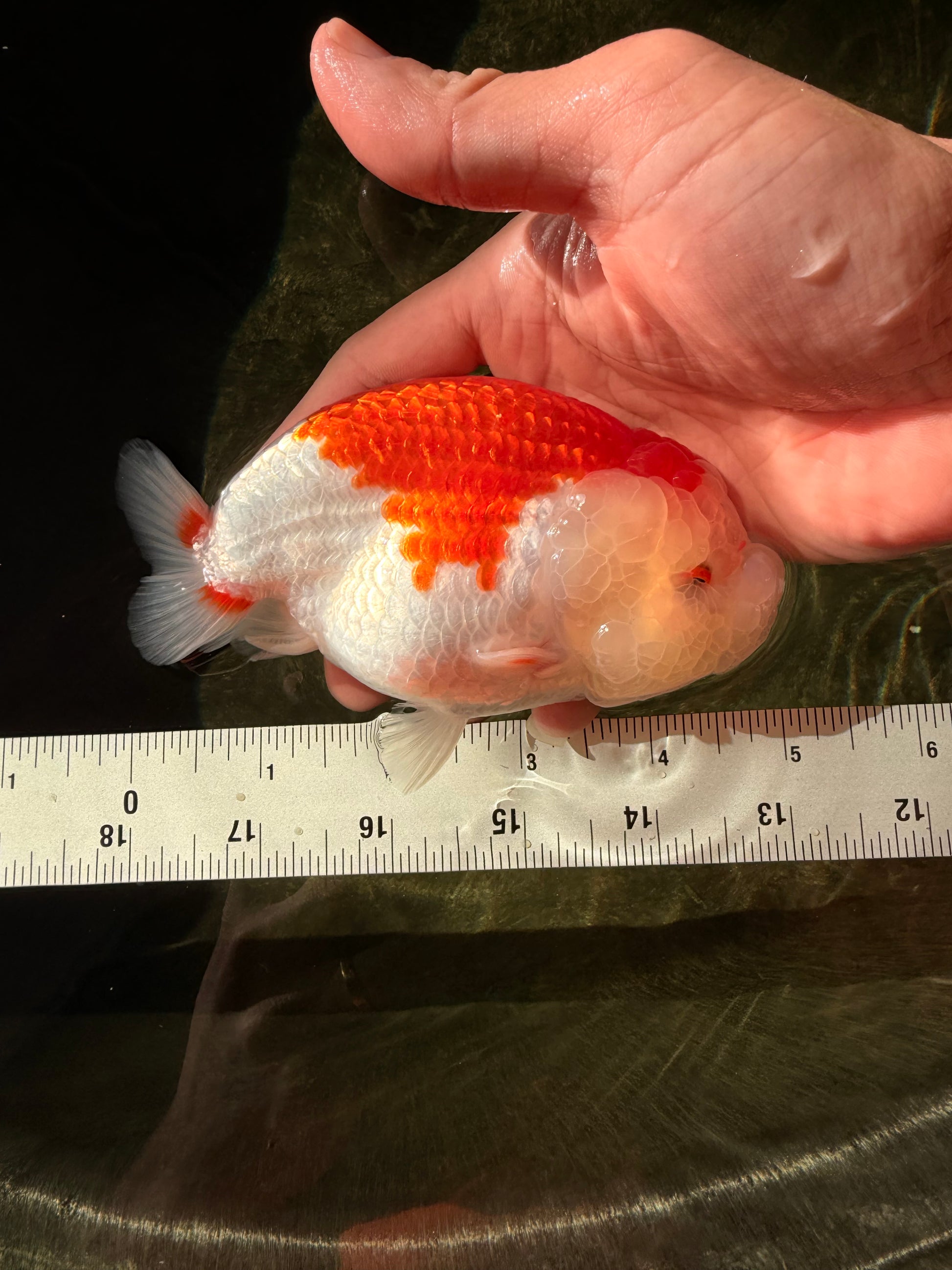 Bold LionKing head growth with clean red-white contrast. Strong 5” body and confident swim. A solid fancy with great presence.