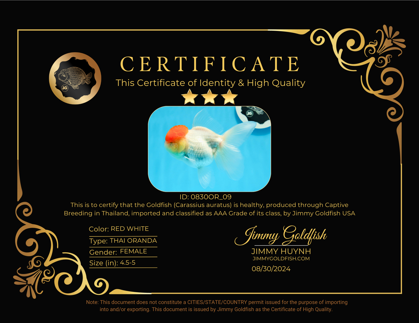 Oranda hembra de tapa roja de grado AAA de 4,5 a 5 pulgadas n.º 0830OR_09