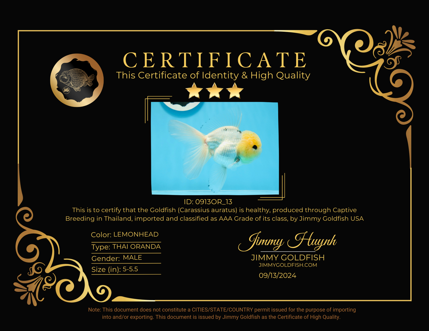Panda cabeza de limón de grado AAA con ojos de botón Oranda macho de 5 a 5,5 pulgadas n.º 0913OR_13