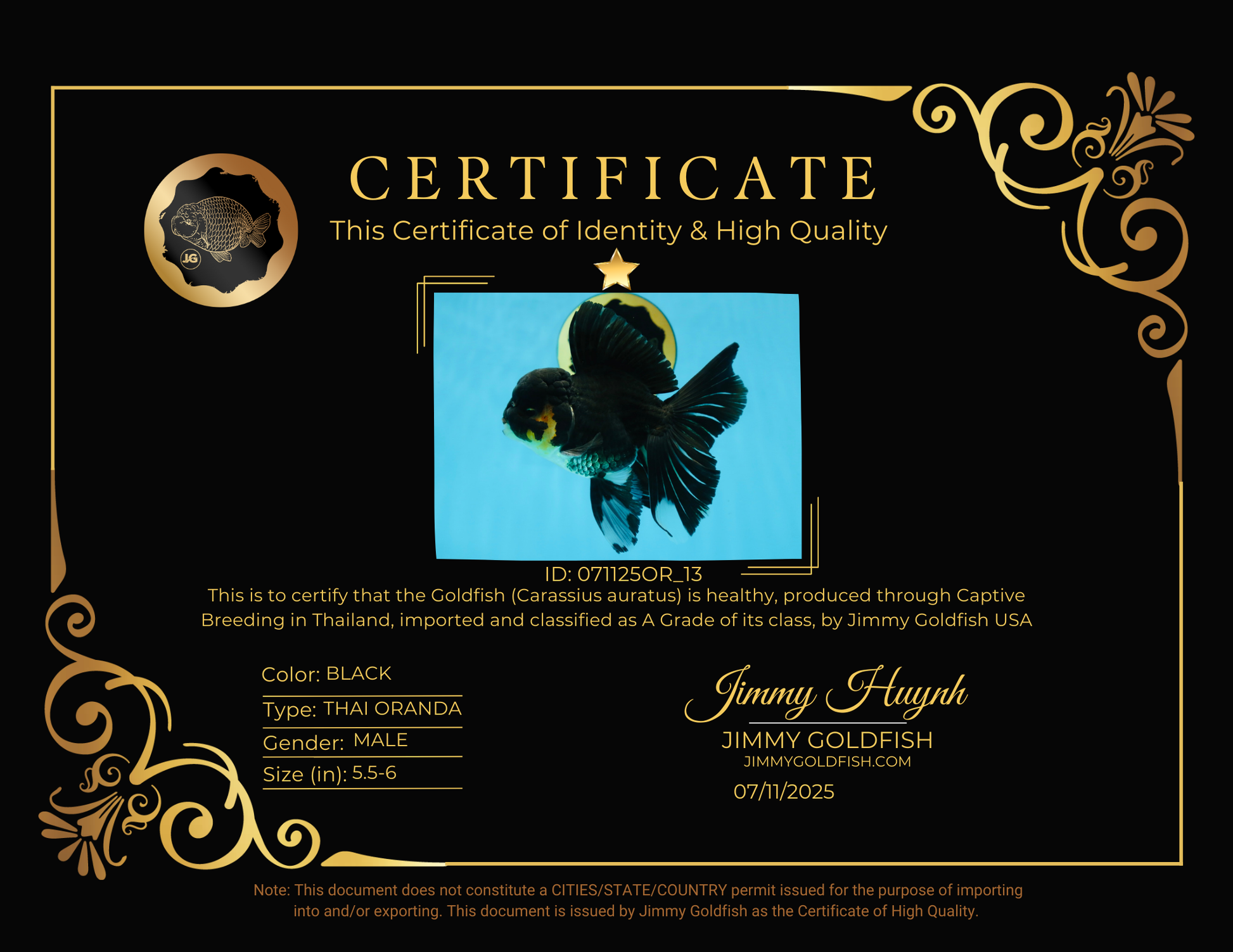 A Grade Black Oranda Male 5.5-6 inches #071125OR_13