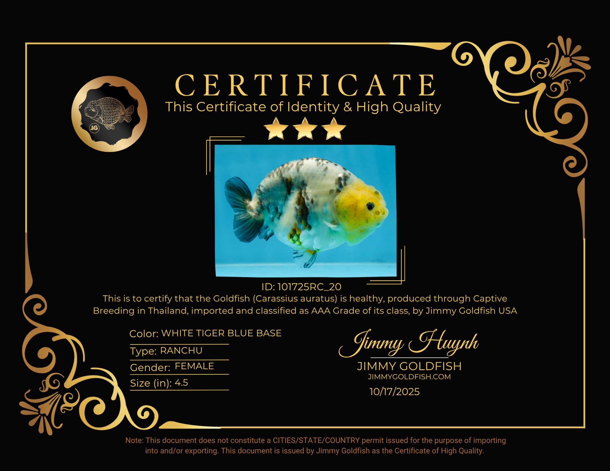 SPECIAL AAA Grade Chinese White Tiger Base Ranchu Female 4.5 inches #101725RC_20