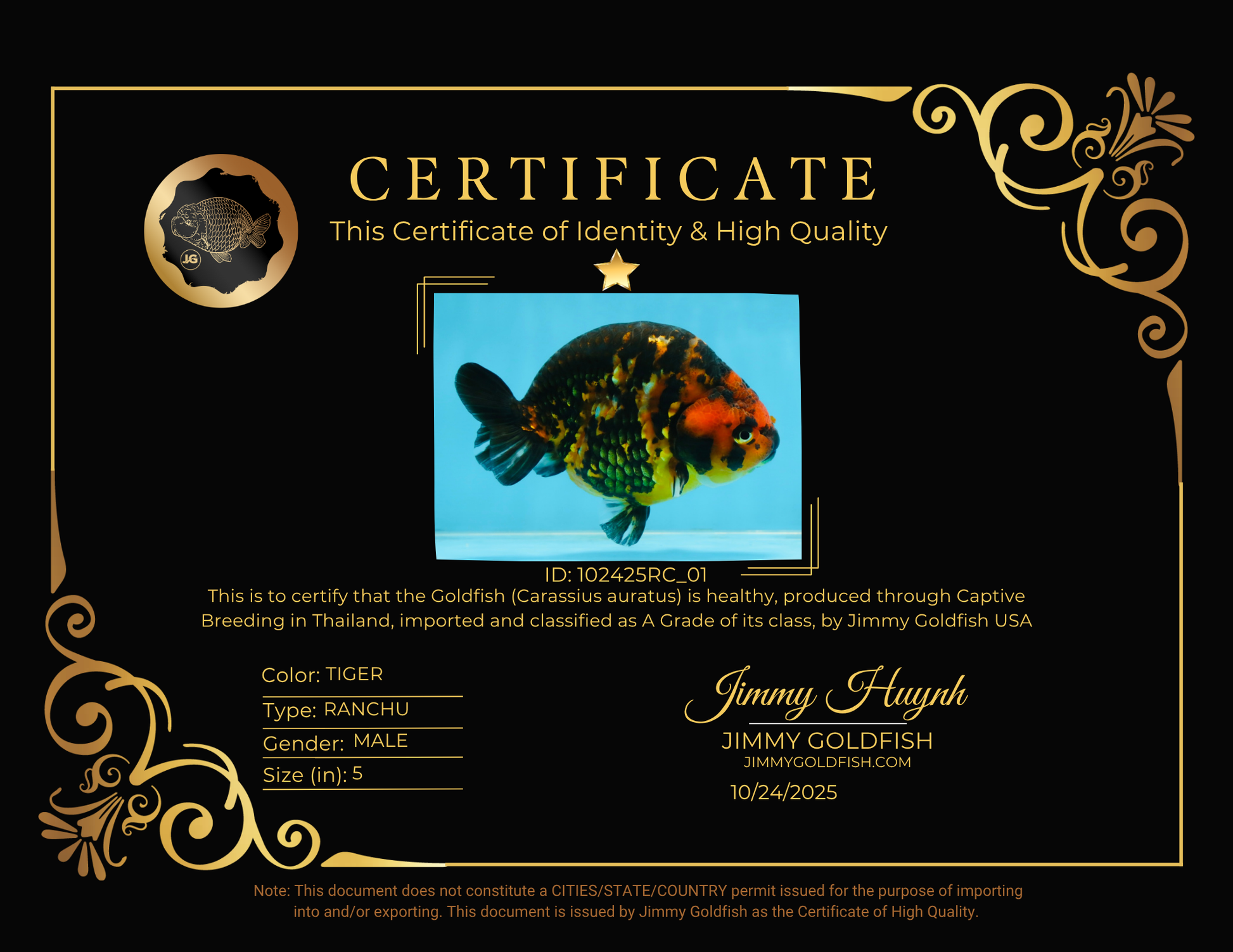 SPECIAL A Grade Chinese Tiger Ranchu Male 5 inches #102425RC_01